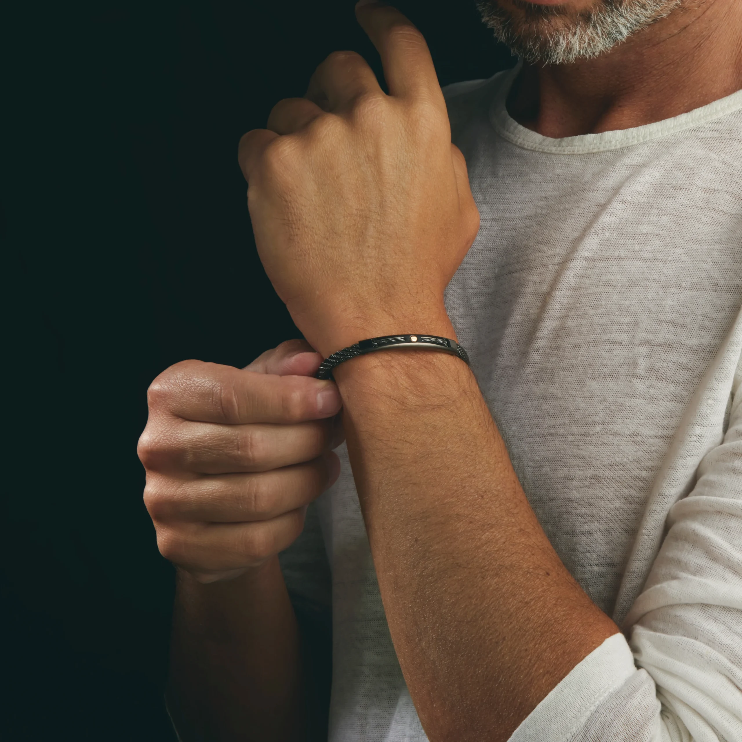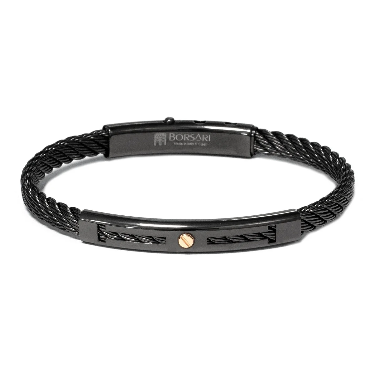 Ανδρικό Βραχιόλι Borsari από μαύρο ανοξείδωτο ατσάλι ροζ χρυσό στοιχείο 18 καρατίων.