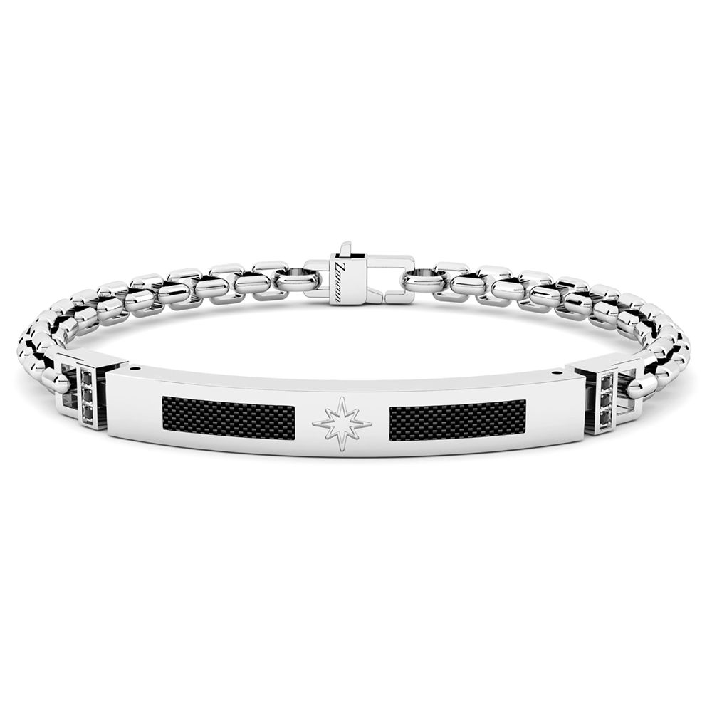 Ανδρικό βραχιόλι Zancan από τη συλλογή Hiteck κατασκευασμένο εξ ολοκλήρου από ανοξείδωτο ατσάλι 316L, ανθρακόνηματα και μαύρο σπινέλιο. Μήκος βραχιολιού 21 cm.
