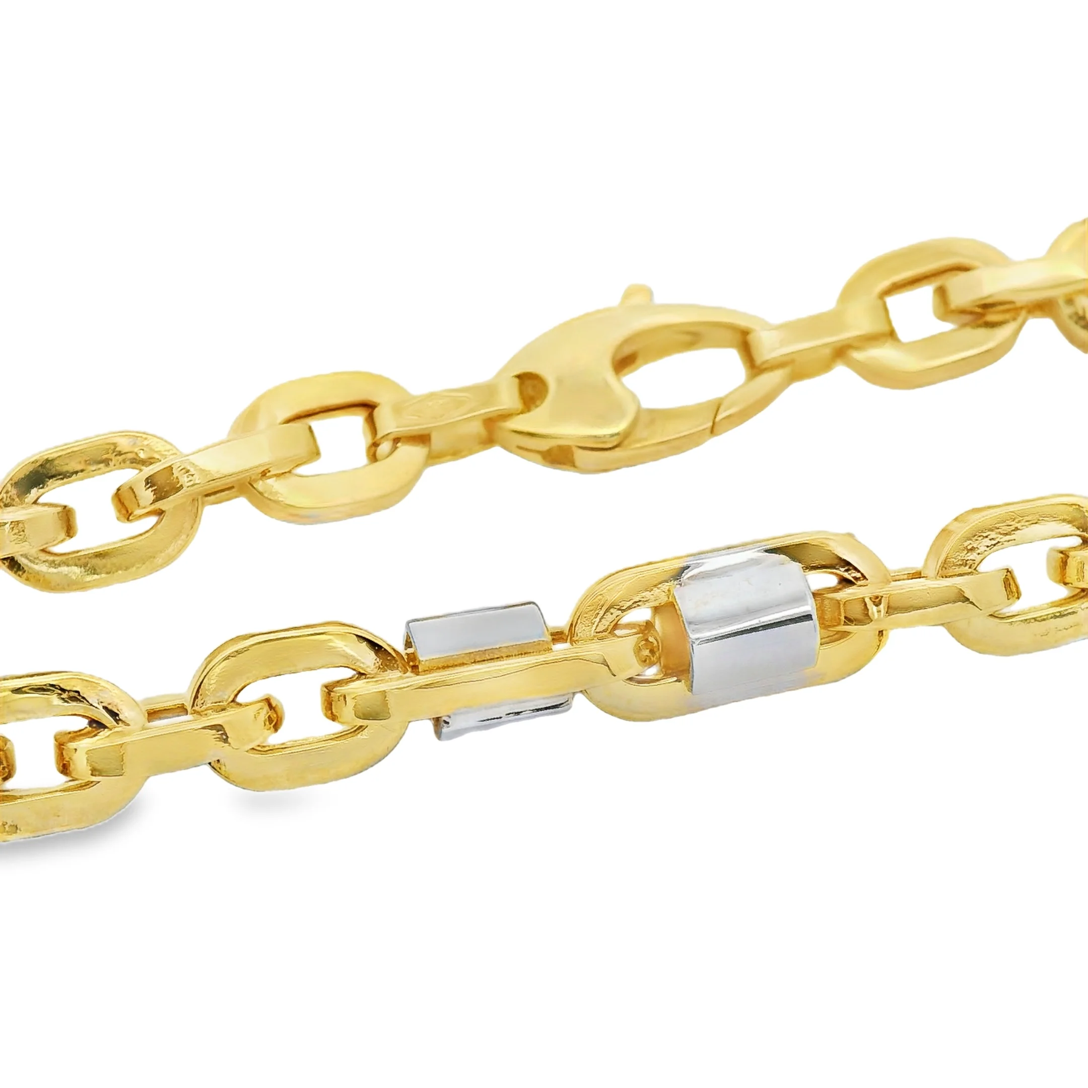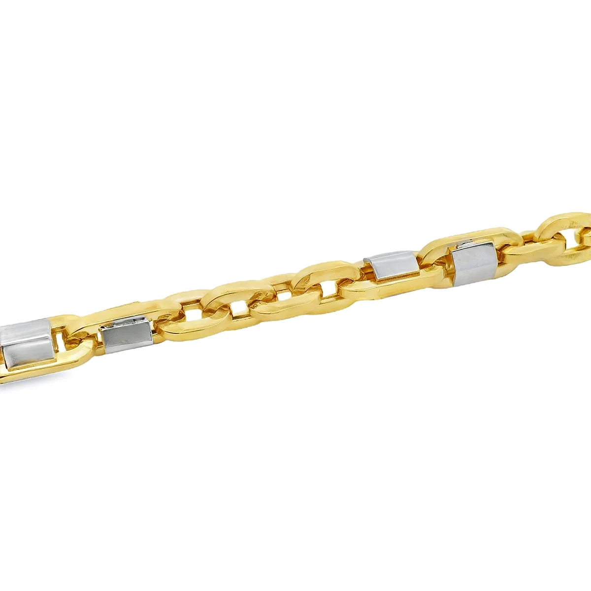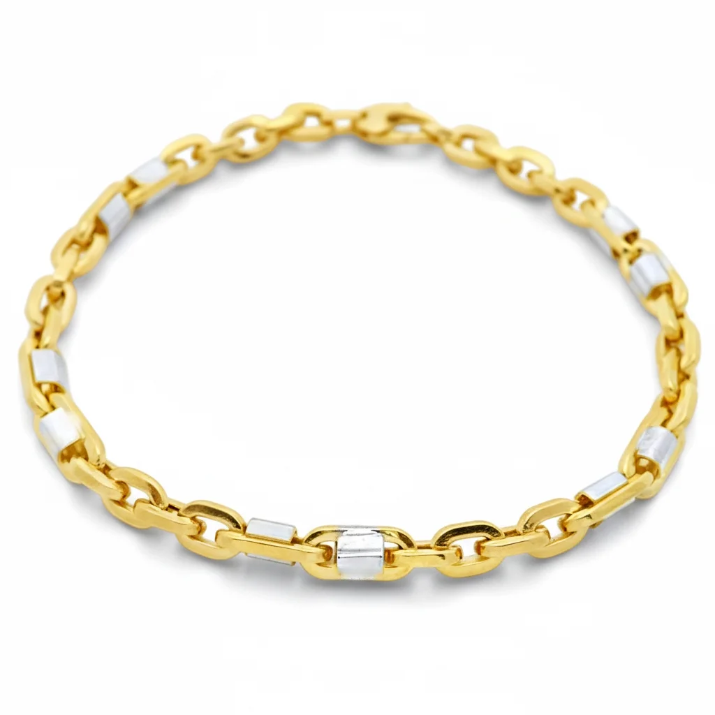 Men's chain bracelet in 14 carat bicolour gold. Length 22cm.