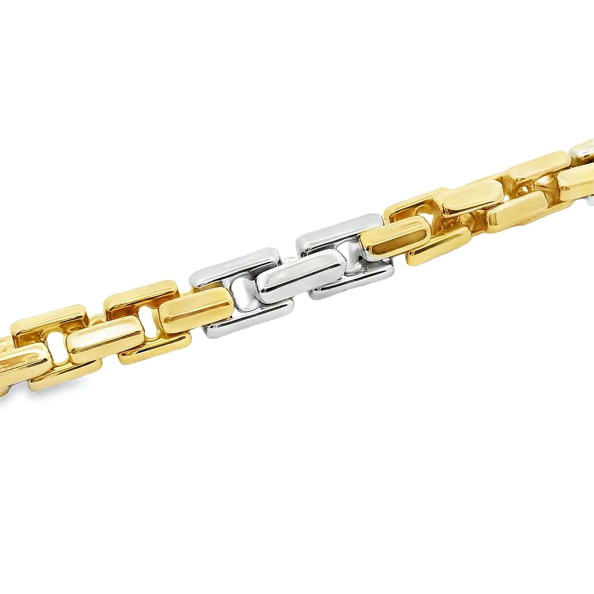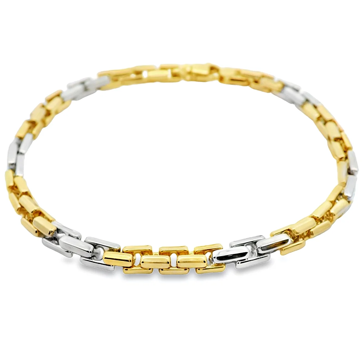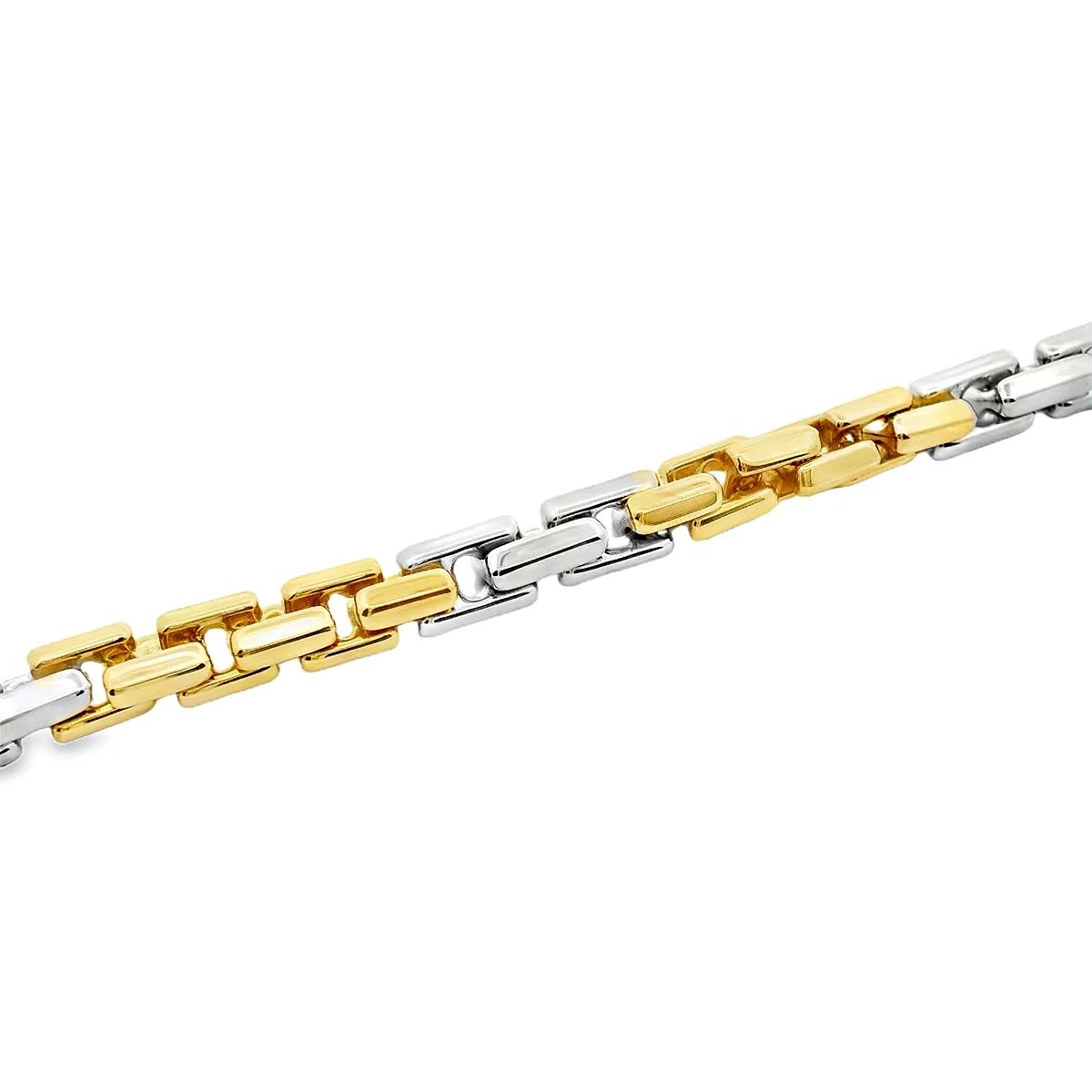 Men's chain bracelet in 14 carat bicolour gold. Length 22cm.