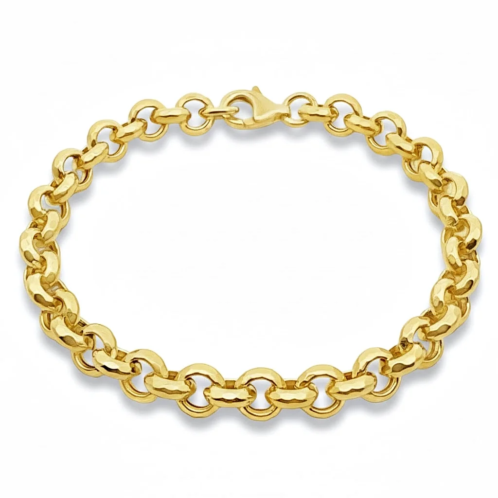 Αυτό το βραχιόλι αποτελεί ένα κλασικό και διαχρονικό κομμάτι, ιδανικό για να προσθέσει όγκο και στυλ σε κάθε εμφάνιση. Είναι κατασκευασμένο από κίτρινο χρυσό 14 καρατίων και διαθέτει την χαρακτηριστική αλυσίδα με στρογγυλούς, ογκώδεις κρίκους.