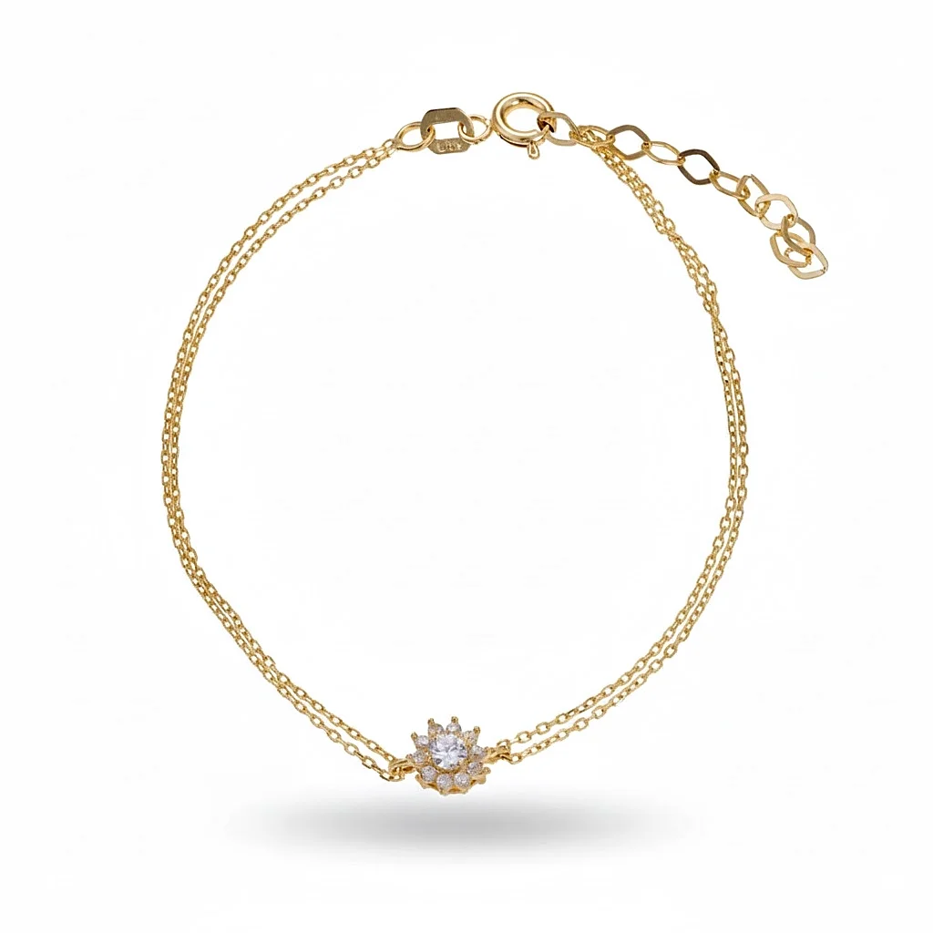Βραχιόλι Γυναικείο με ζιργκόν σε χρυσό 14 καρατίων. Μήκος αλυσίδας 17cm και προέκταση 3cm.
