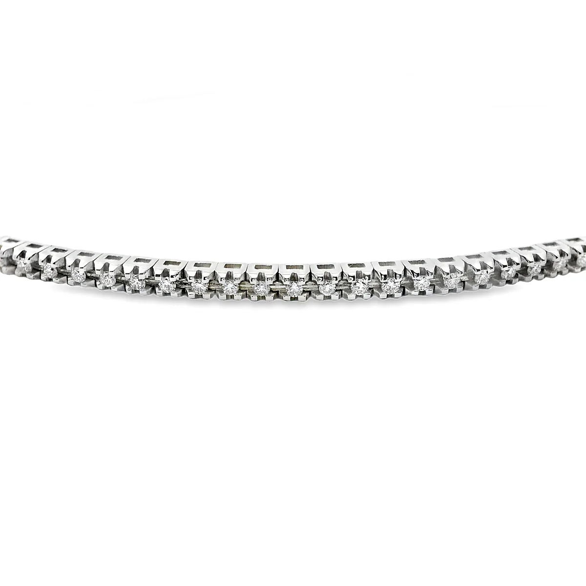 Βραχιόλι Ριβιερα με Διαμάντια σε λευκόχρυσο 18 καράτια με 98 μπριγιάν συνολικού βάρους 0,47ct χρώματος G και καθαρότητας VS. Συνολικό μήκος 19cm.