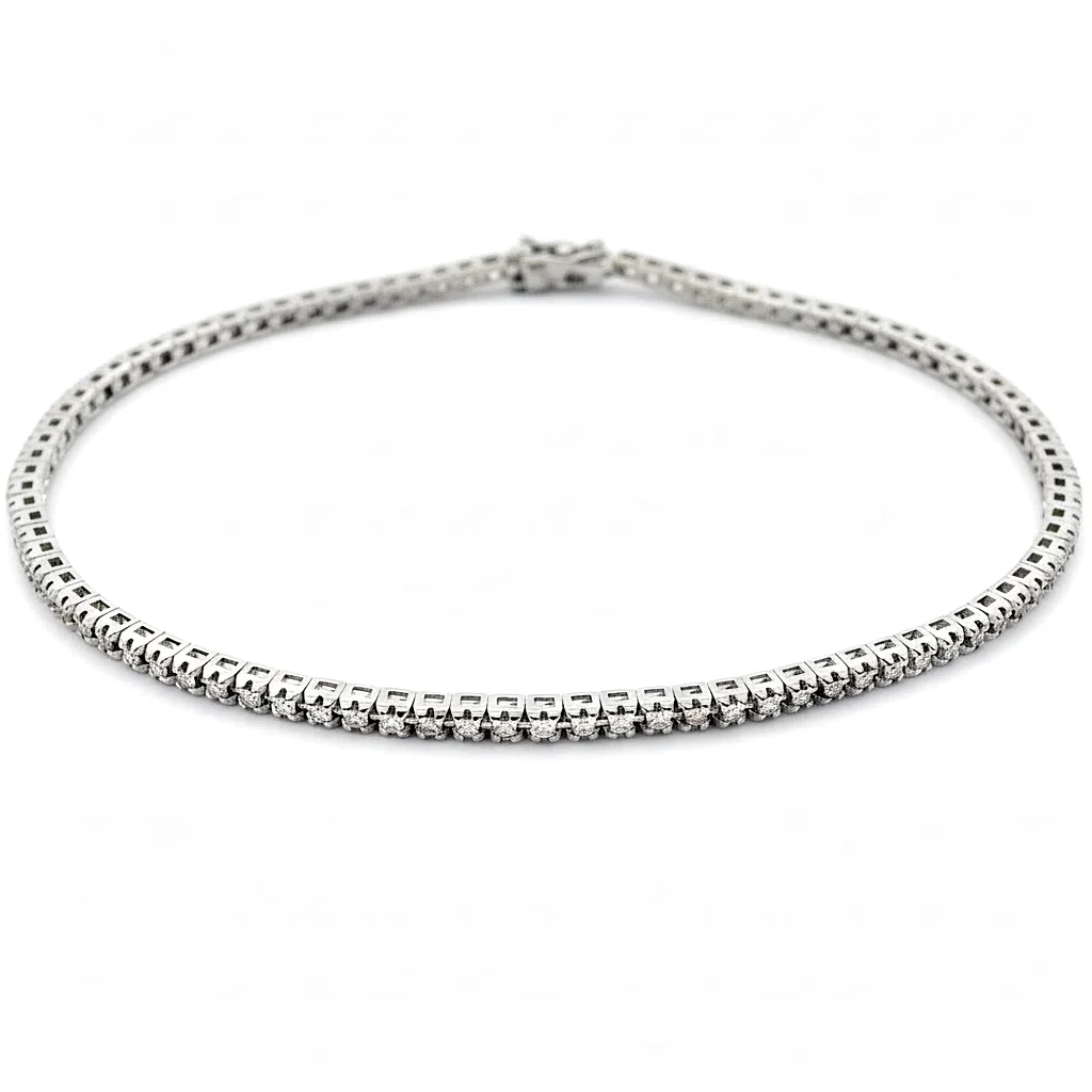 A επένδυση διαχρονικής αξίας και απαράμιλλης κομψότητας. Αυτό το κλασικό βραχιόλι Tennis είναι κατασκευασμένο από πολυτελή λευκόχρυσο 18 καρατίων και διαθέτει μια συνεχή σειρά από λαμπερά, φυσικά διαμάντια. Το βραχιόλι αυτό είναι σύμβολο φινέτσας και πολυτέλειας, ιδανικό για να συνοδεύσει τις πιο επίσημες στιγμές σας. Ο λευκός χρυσός αναδεικνύει το “λευκό” χρώμα των διαμαντιών, προσφέροντας μια καθαρή, αριστοκρατική λάμψη. Το Tennis βραχιόλι είναι ένα κόσμημα που αποτελεί βασικό κομμάτι κάθε συλλογής υψηλής κοσμηματοποιίας. Εξασφαλίζει την ανώτερη ποιότητα και αντοχή, καθιστώντας το ένα κόσμημα που περνά από γενιά σε γενιά. Αν και πολυτελές, μπορεί να φορεθεί τόσο σε επίσημες εκδηλώσεις όσο και να δώσει έναν τόνο κομψότητας στο καθημερινό ντύσιμο.