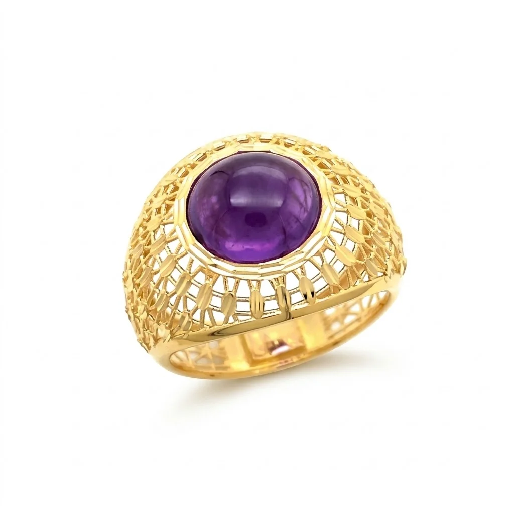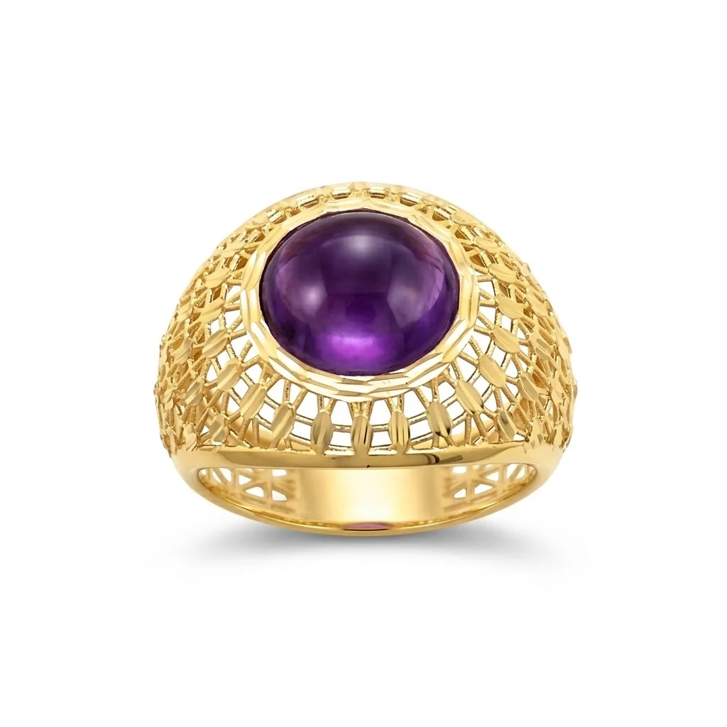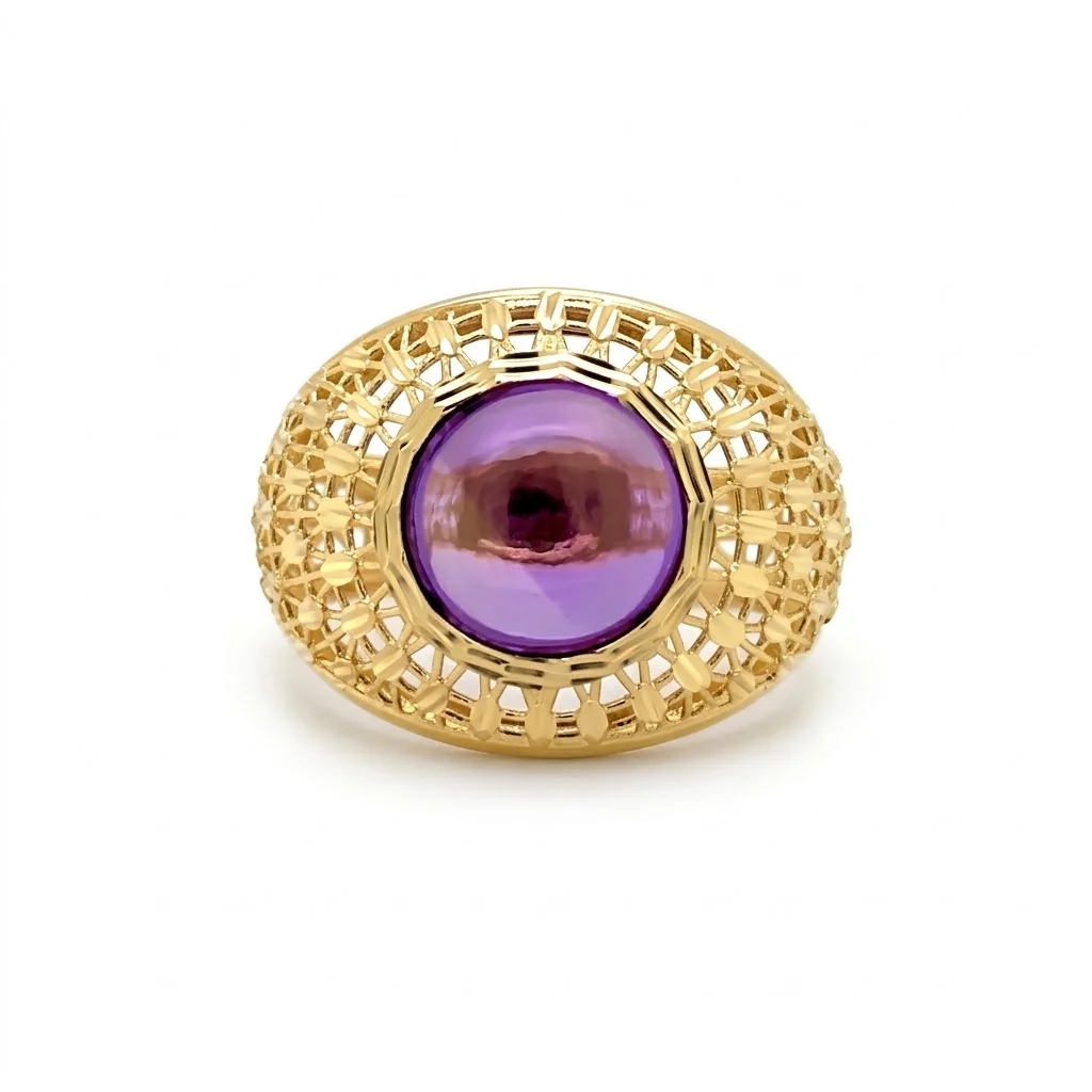 Women's ring with purple cubic zirconia in 14 carat gold.