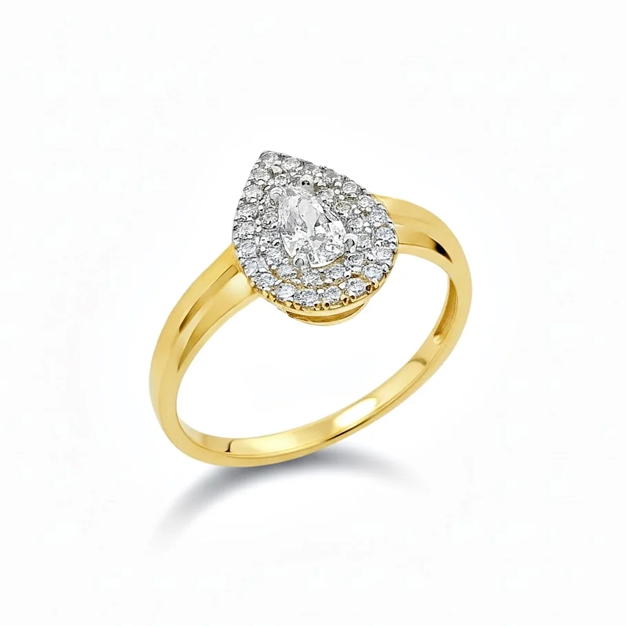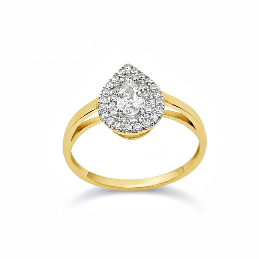 Rosette ring in 14 carat gold with white cubic zirconia.