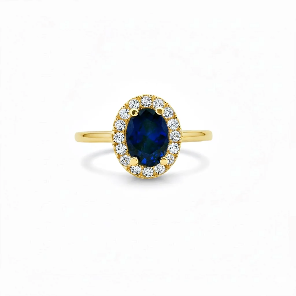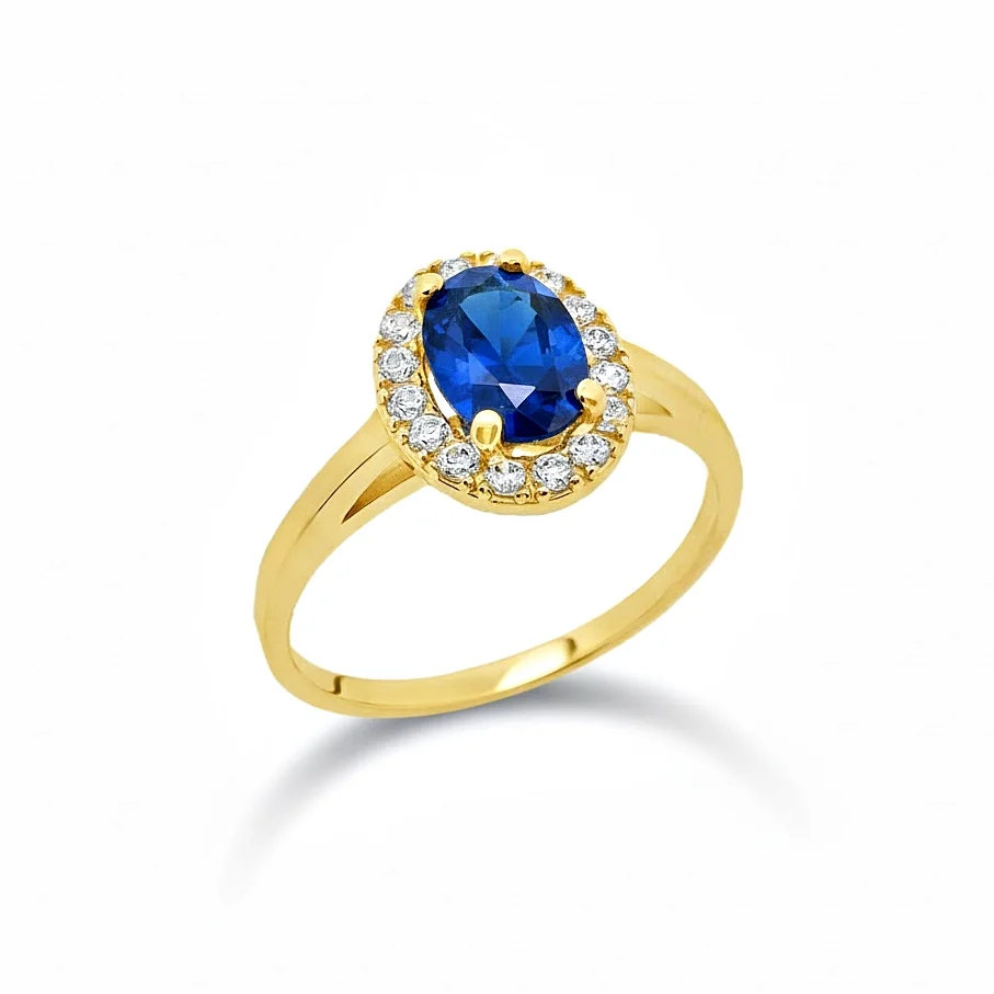 Rosette ring in 14 carat gold with blue and white cubic zirconia.