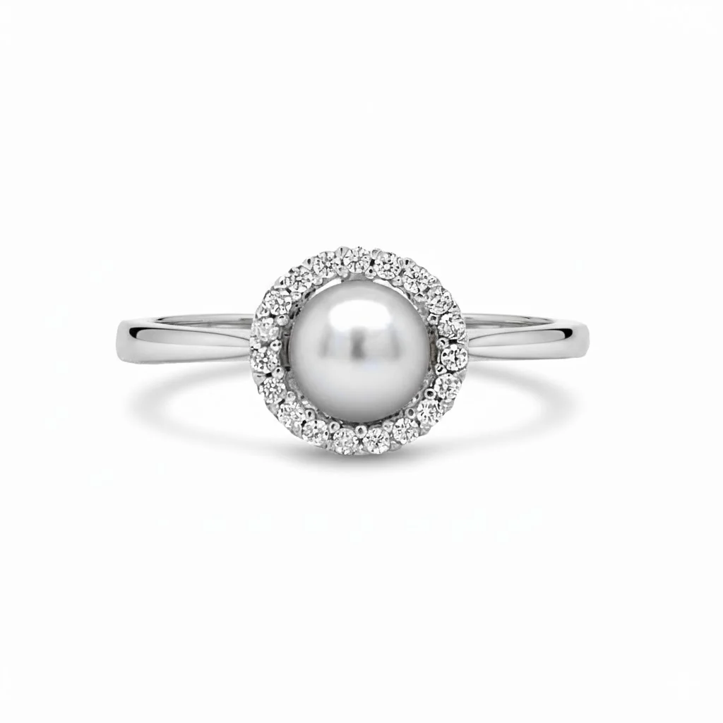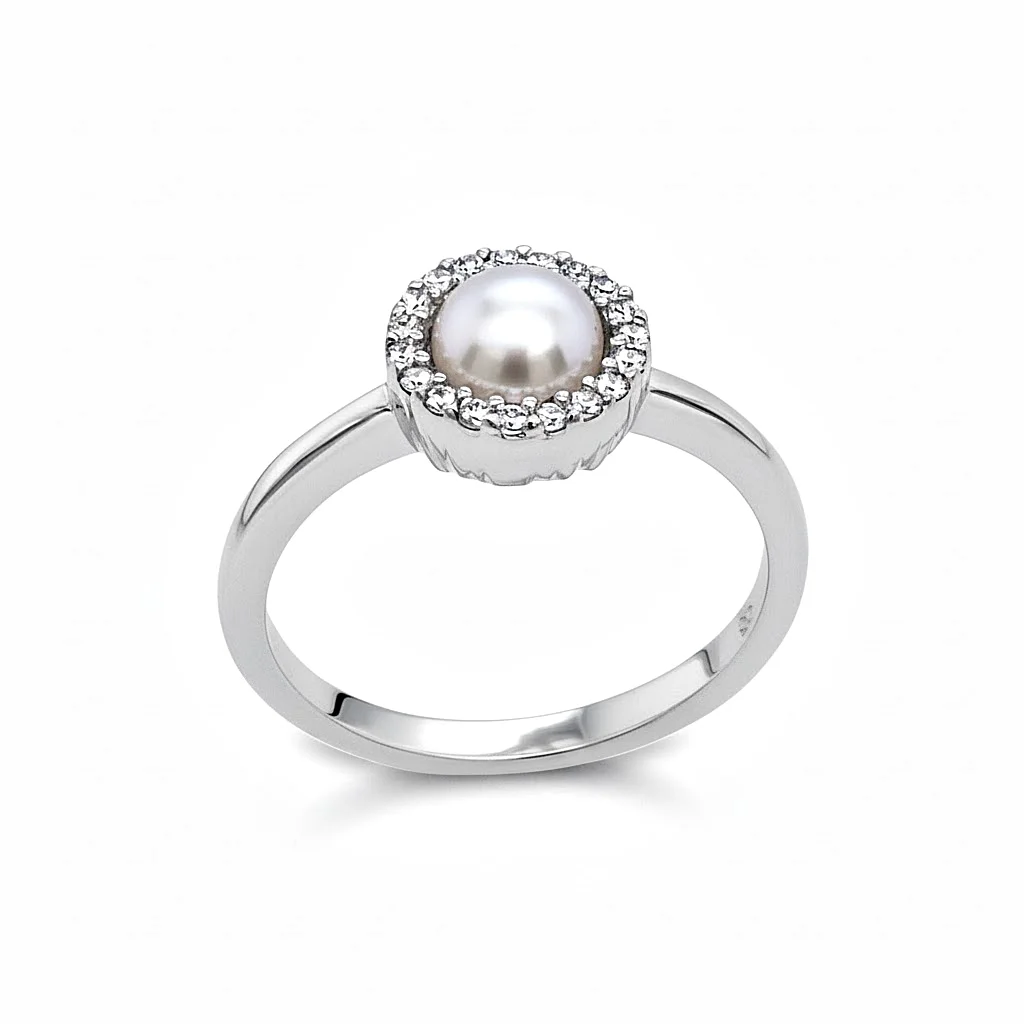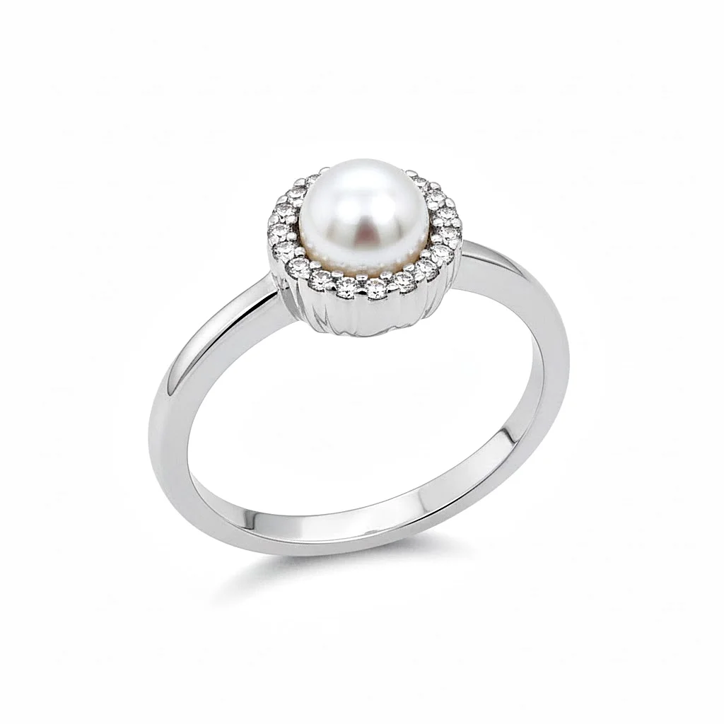 Rosette Ring with Pearl and Zirconia