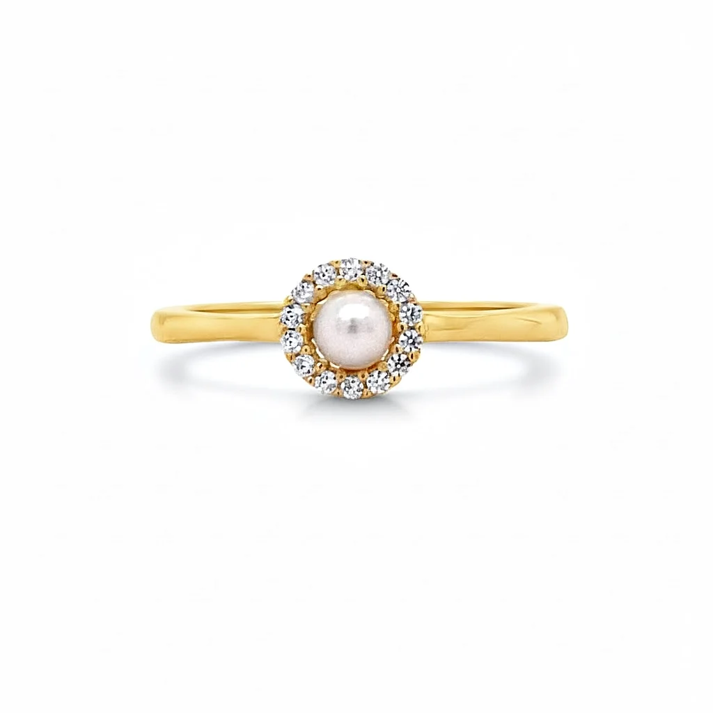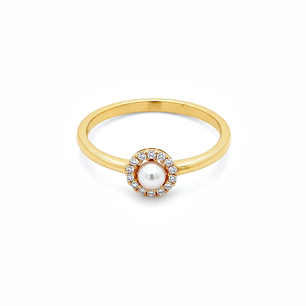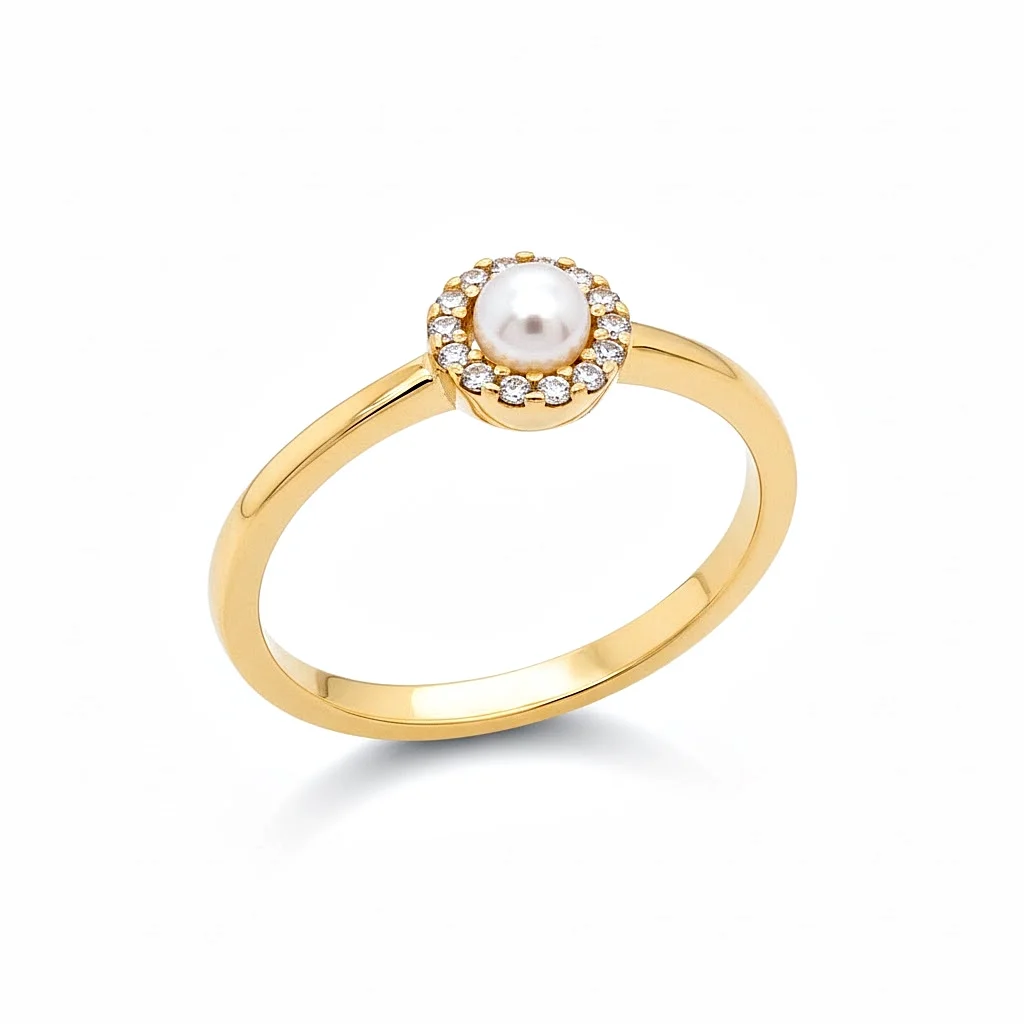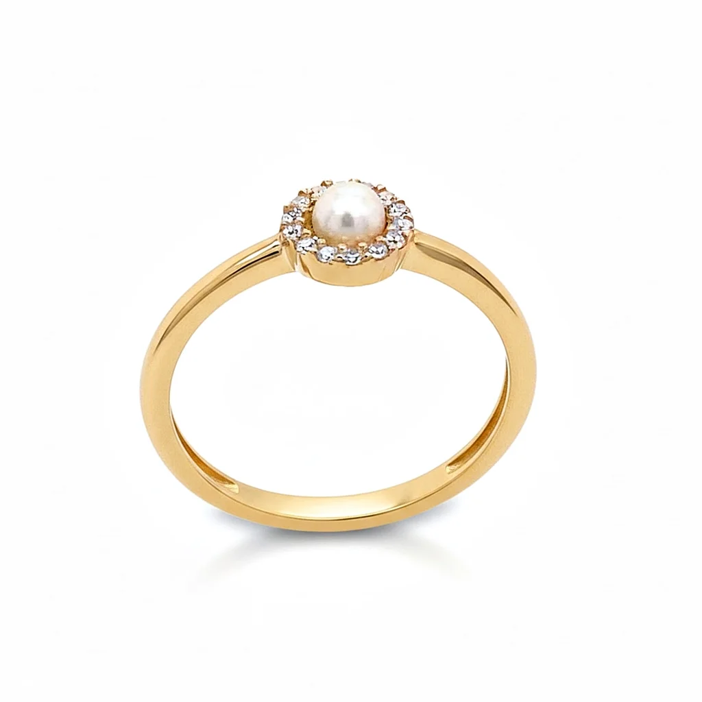 This υπέροχο δαχτυλίδι συνδυάζει την κλασική φινέτσα του Μαργαριταριού με τη σύγχρονη λάμψη των ζιργκόν, δημιουργώντας ένα εντυπωσιακό μονόπετρο. Κατασκευασμένο από Gold 14 Καρατίων. Στο κέντρο δεσπόζει ενα λευκό, στρογγυλό μαργαριτάρι, το οποίο περιβάλλεται από ένα φωτοστέφανο (Halo) με μικρά, λαμπερά λευκά ζιργκόν. Η γάμπα του δαχτυλιδιού είναι λεπτή και γυαλιστερή, αναδεικνύοντας το εντυπωσιακό κεντρικό μοτίφ. Κλασικό, Ρομαντικό, Elegant. Ιδανικό για: Δαχτυλίδι αρραβώνα (ως εναλλακτική), ή για δώρο επετείου/γενεθλίων.