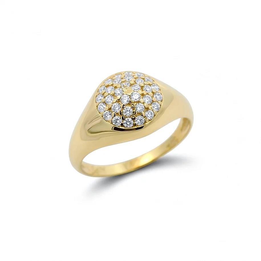Δακτυλίδι Σεβαλιέ με Στρογγυλή Επιφάνεια και Pavé Ζιργκόν σε χρυσό 9 καρατίων.