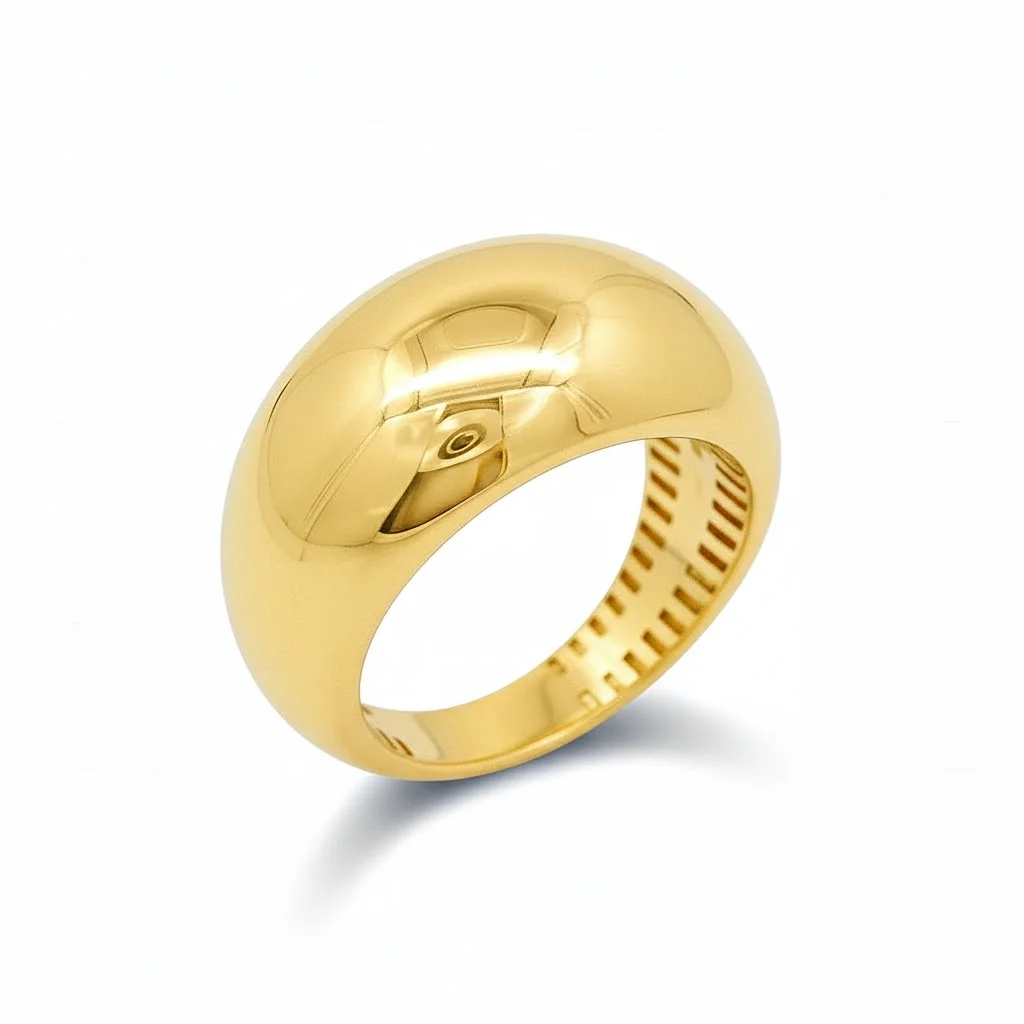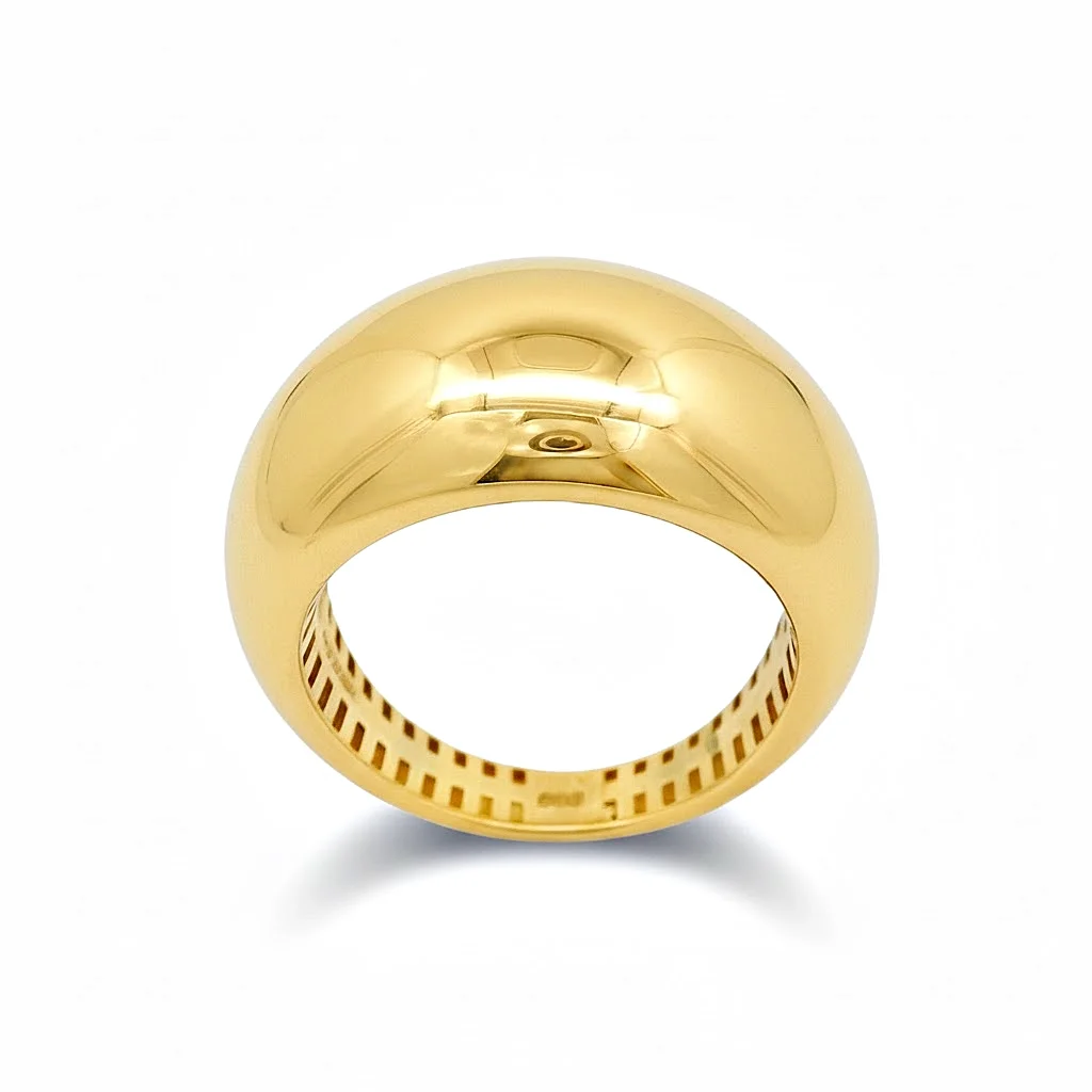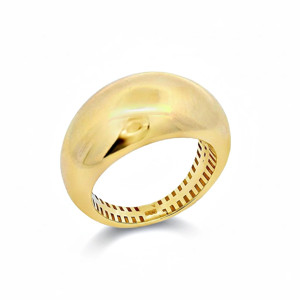 Η λεία, γυαλιστερή επιφάνειά του από κίτρινο χρυσό 14Κ αντανακλά το φως με μοναδικό τρόπο, προσδίδοντας έναν αέρα πολυτέλειας και αυτοπεποίθησης. Ο σχεδιασμός είναι συμπαγής, εξασφαλίζοντας τέλεια εφαρμογή και αίσθηση ποιότητας. Είναι ένα κλασικό statement δαχτυλίδι που φοριέται άνετα και ταιριάζει με κάθε στυλ, από το casual chic μέχρι το βραδινό.