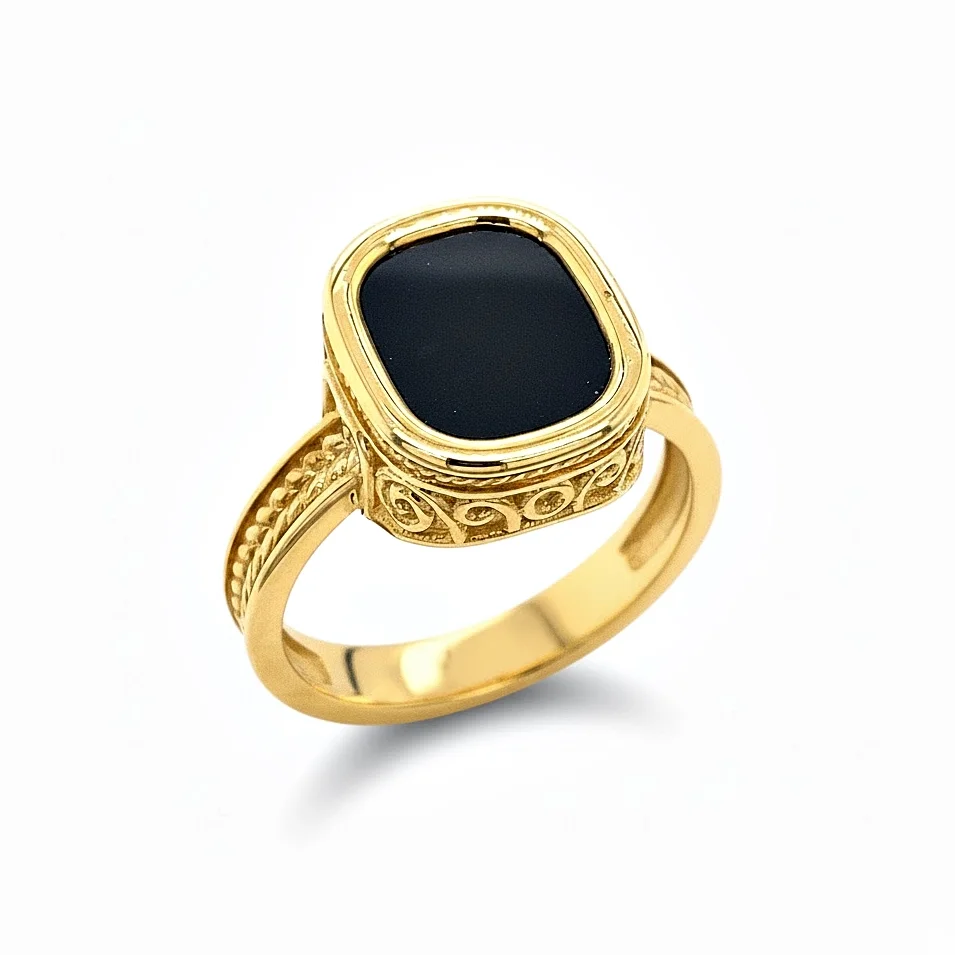 Men's ring in 14 carat gold with black onyx.