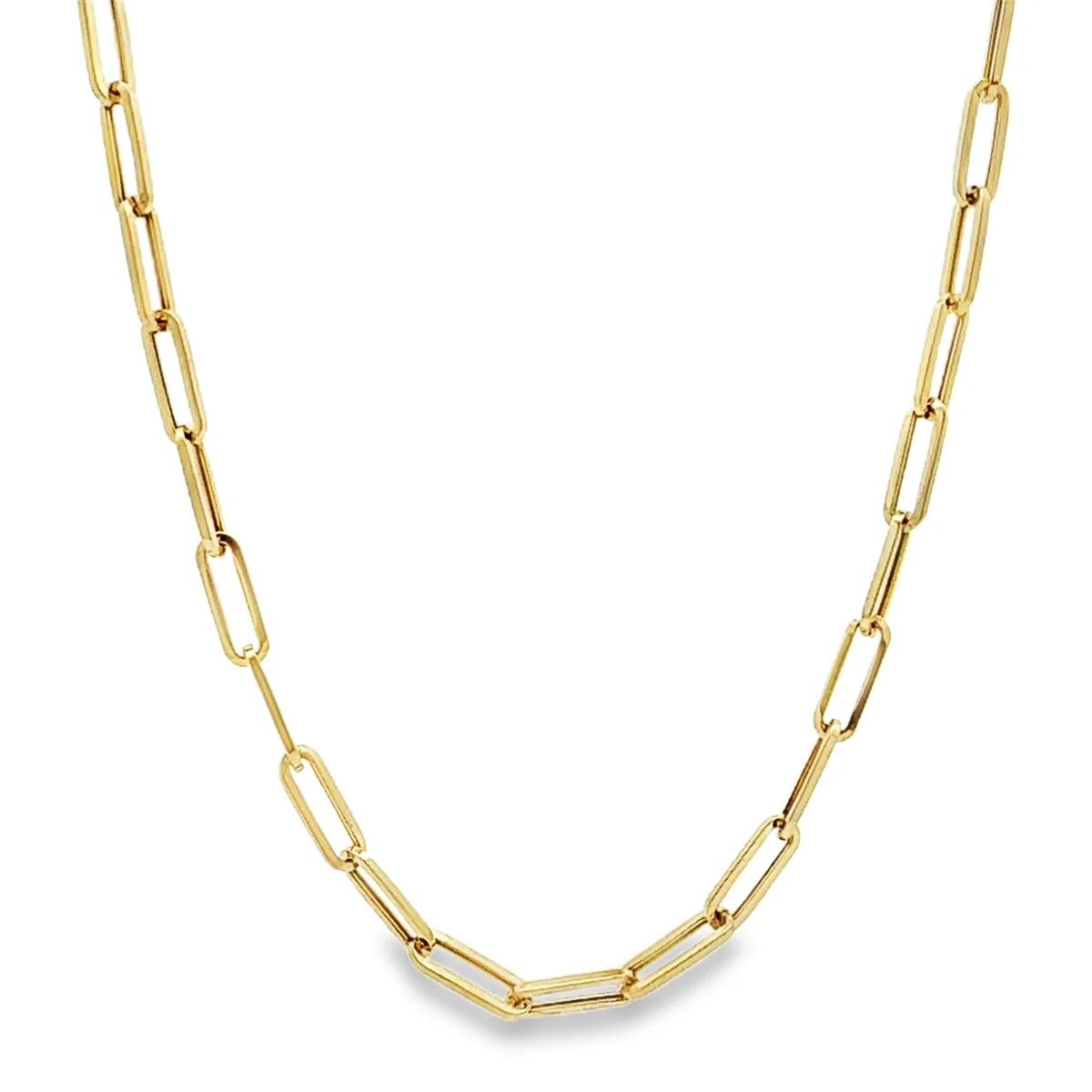 This exquisite necklace features an elegant and timeless design. Perfectly crafted with high quality gold, its elegant links create a sleek and modern look that adds a touch of luxury to any outfit. Whether worn alone or paired with your favorite pendant, this versatile piece is a must-have for any jewelry collection.