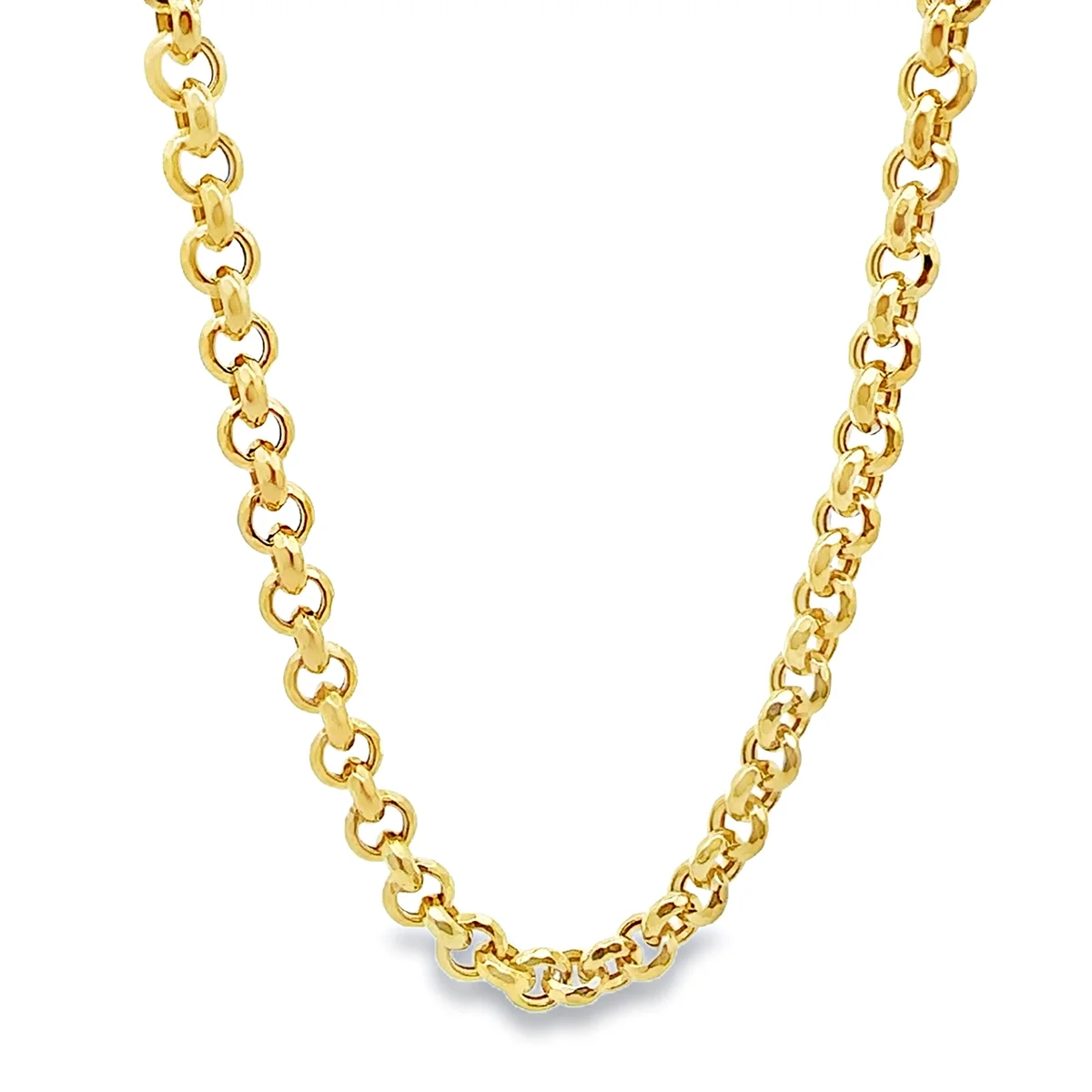 A κομψή and στιβαρή αλυσίδα-κολιέ που αποτελεί ένα statement piece για κάθε εμφάνιση. Είναι κατασκευασμένη από κίτρινο χρυσό 14 καρατίων και διαθέτει τη δημοφιλή αλυσίδα με ογκώδεις, στρογγυλούς κρίκους που αγκαλιάζουν το λαιμό με λάμψη.