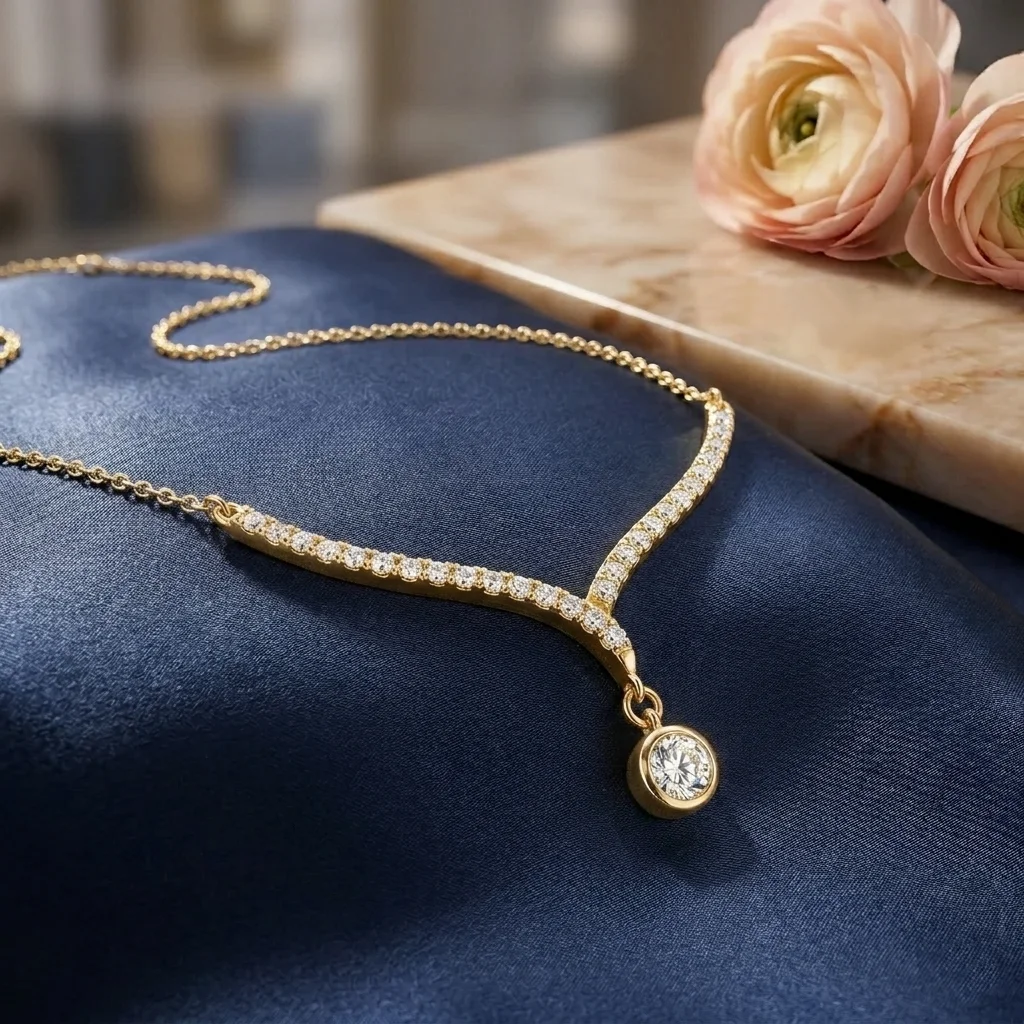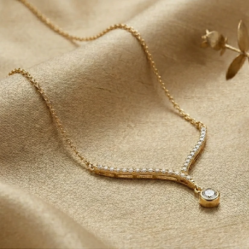 Κολιέ γυναικείο με ζιργκόν σε 9 καράτια χρυσό. Μήκος αλυσίδας 45cm με ενδιάμεσο κρίκο στους 43cm.