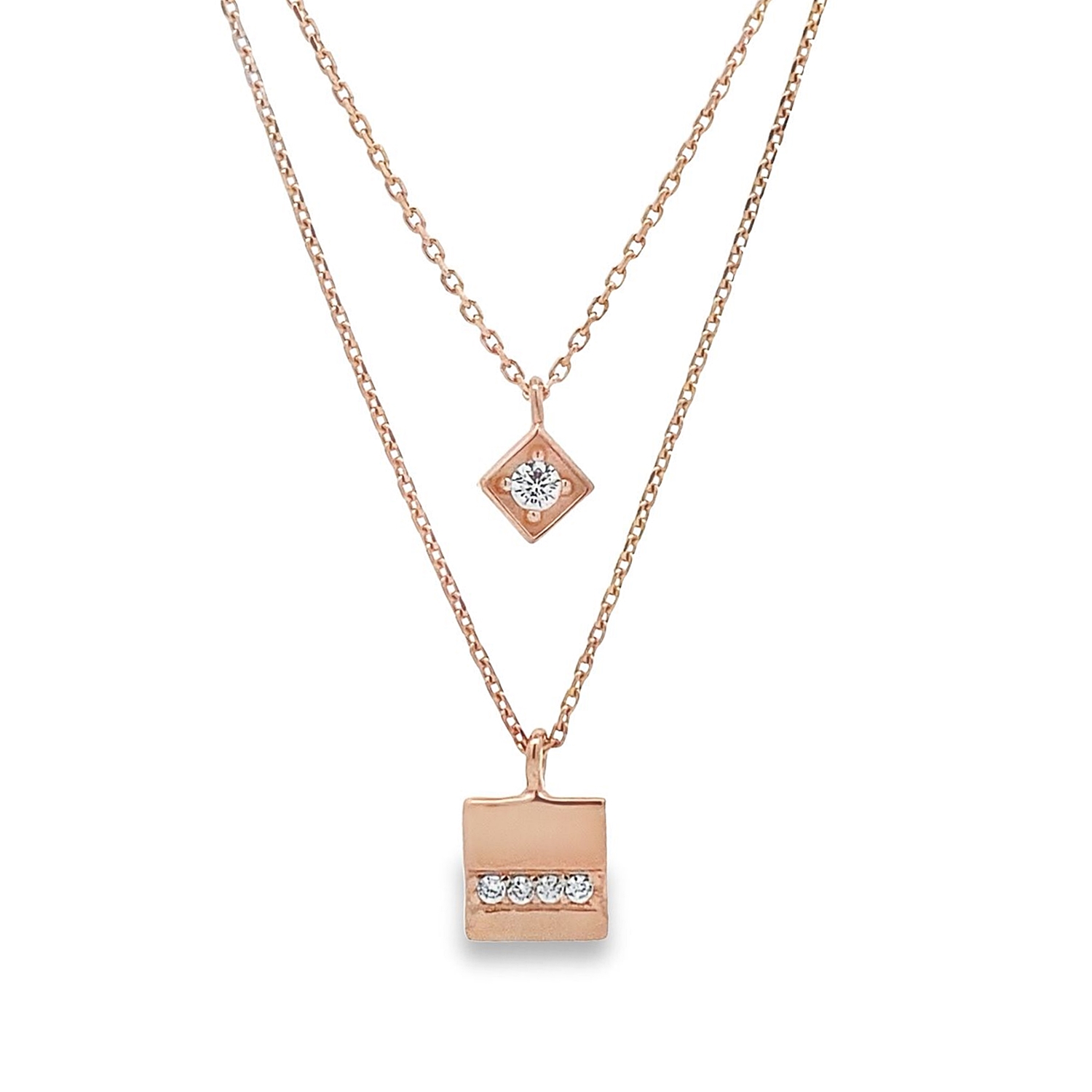 Κολιέ διπλό με ζιργκόν σε ροζ χρυσό 14 καράτια. Μήκος αλυσίδας 40cm και 3cm προέκταση.