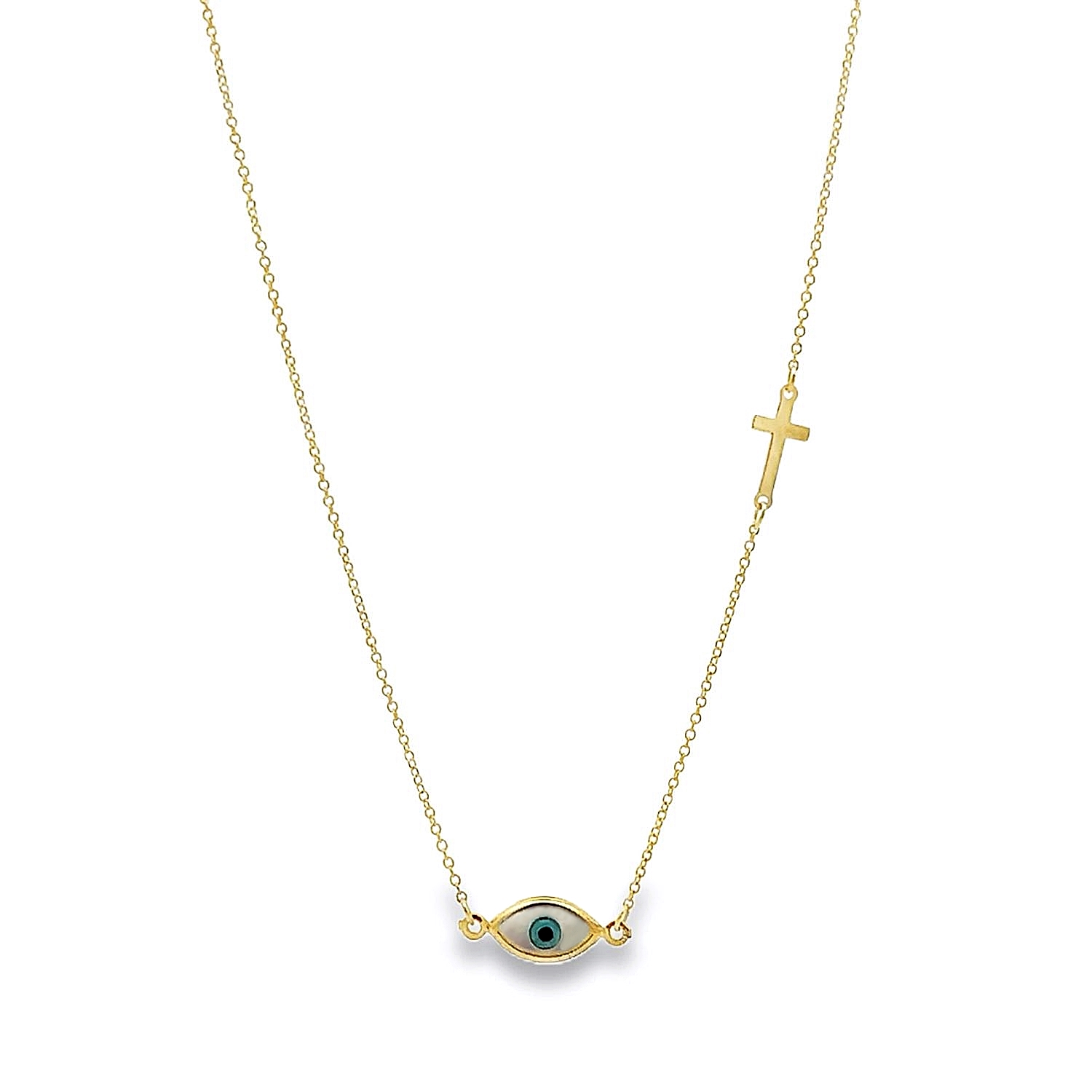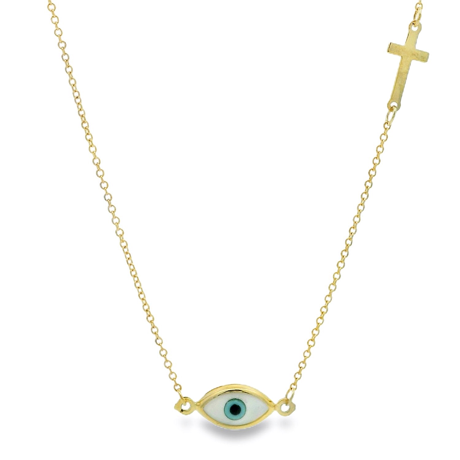 Women's necklace with eye and cross in 14 carat gold. Chain length 42cm.
