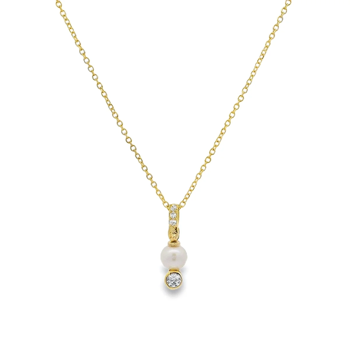 Κολιέ με Μαργαριτάρι και ζιργκόν σε 9 καράτια χρυσό. Μήκος αλυσίδας 40cm και 3cm προέκταση.