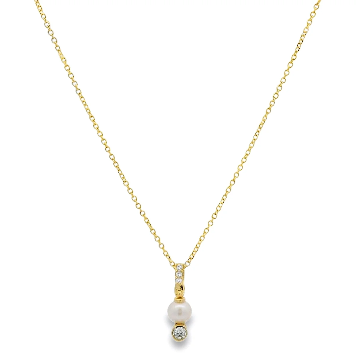 Necklace with Pearl and cubic zirconia
