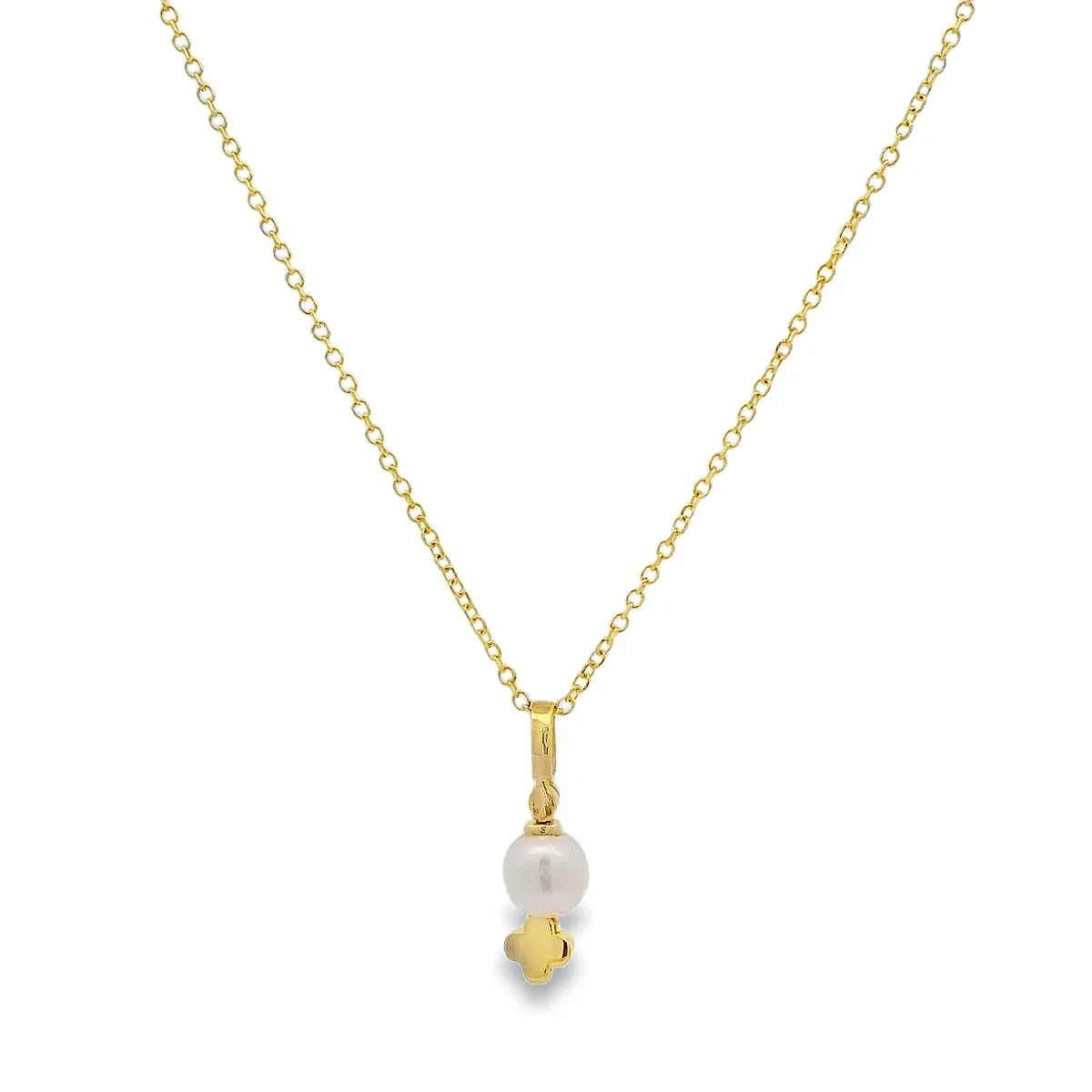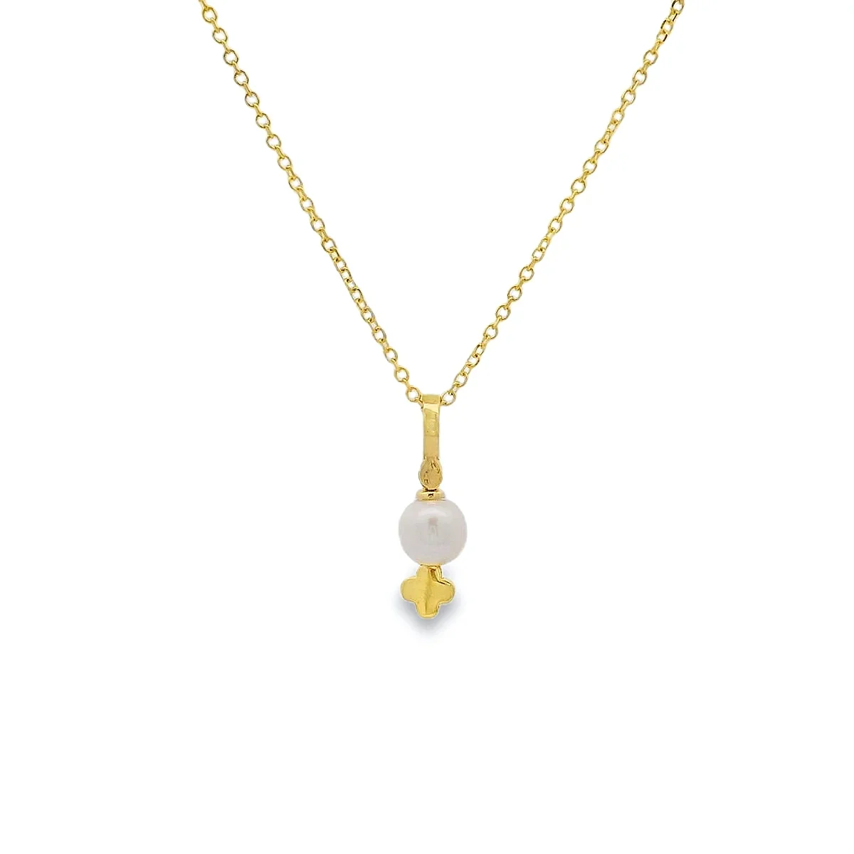 Ένα κολιέ με έντονο συμβολισμό και εξαιρετική φινέτσα. Αυτό το χρυσό κολιέ συνδυάζει την αγνότητα του μαργαριταριού με την προστασία του σταυρού. Είναι ένα κόσμημα που αποτελεί ιδανική επιλογή τόσο για προσωπική χρήση όσο και ως δώρο!