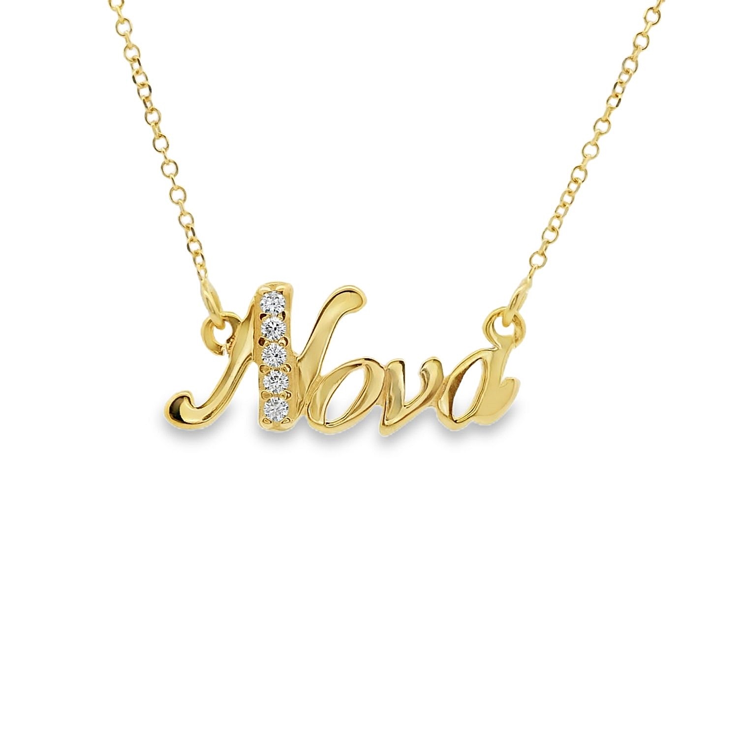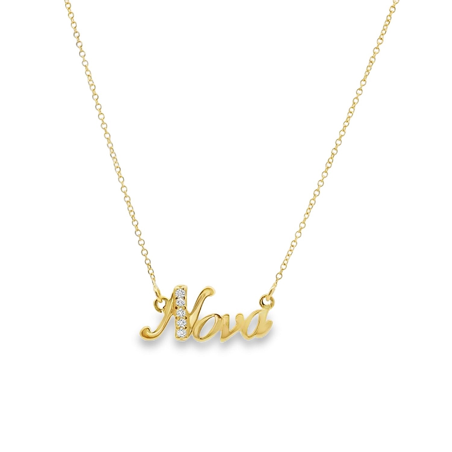 Godmother necklace in 9 carat gold with cubic zirconia stones. Chain length 40cm.
