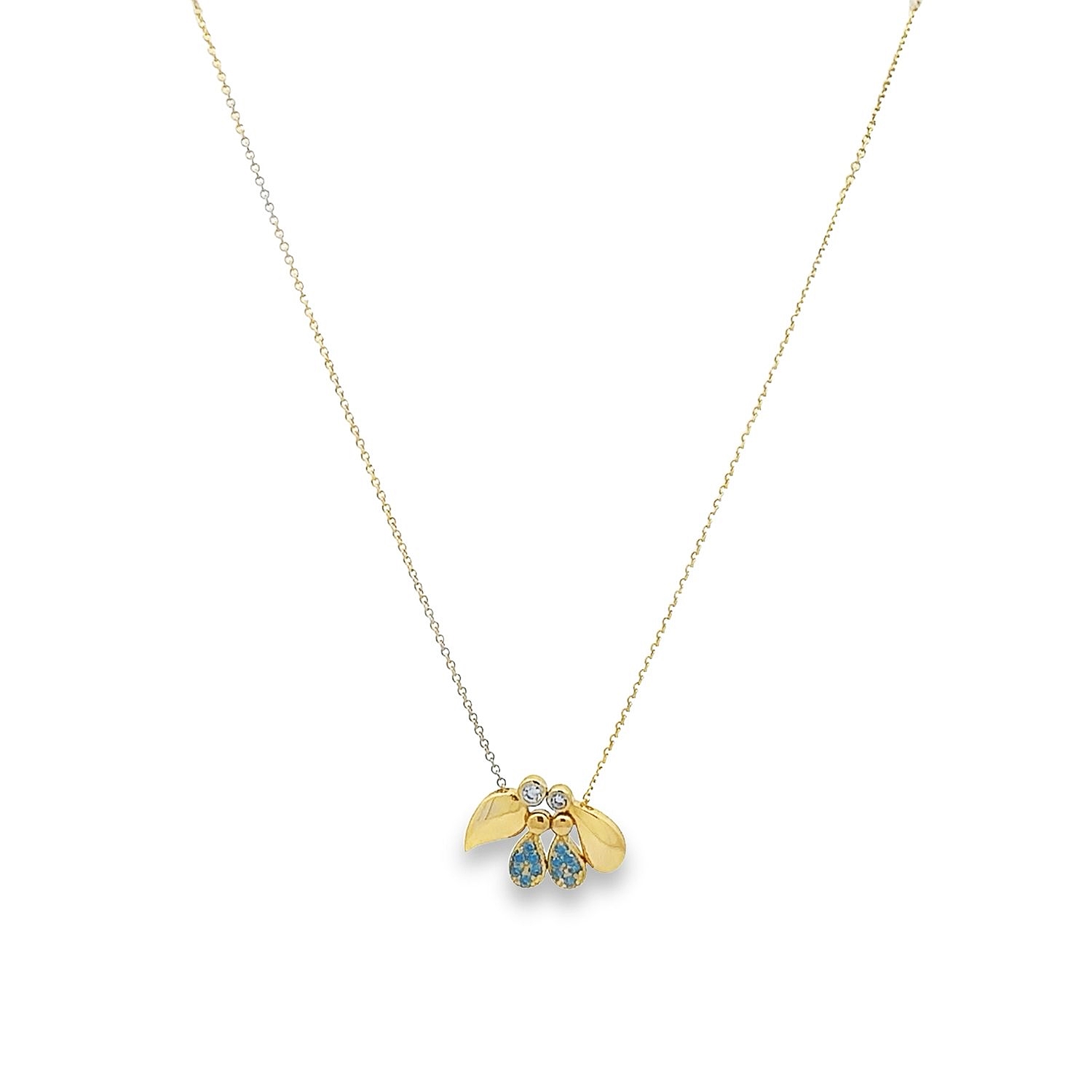 Family necklace with two little boys in 9 carat gold with light blue cubic zirconia. Chain length 40cm.