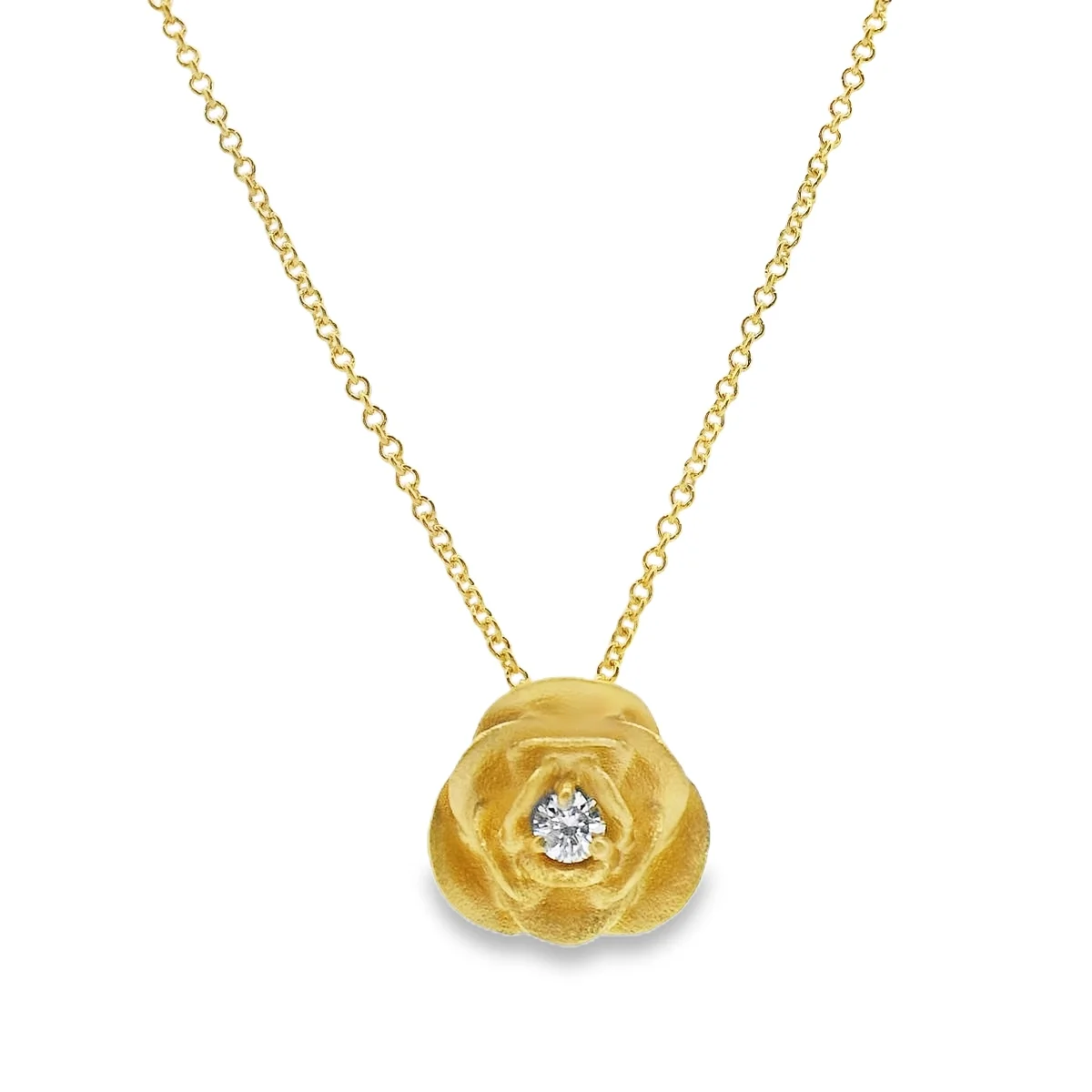 This exquisite gold rose pendant necklace captures the ultimate essence of elegance and beauty. Crafted with meticulous attention to detail, the pendant features a stunning diamond at its center, symbolizing love and grace. Perfect for any occasion, this piece adds a touch of sophistication to your outfit.