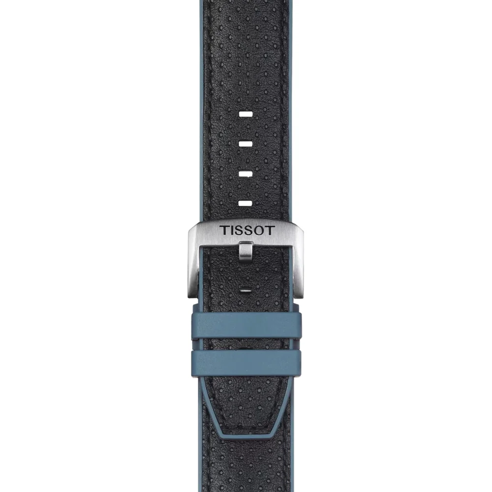 Tissot Blue Leather and Rubber 22mm strap, with quick release system.