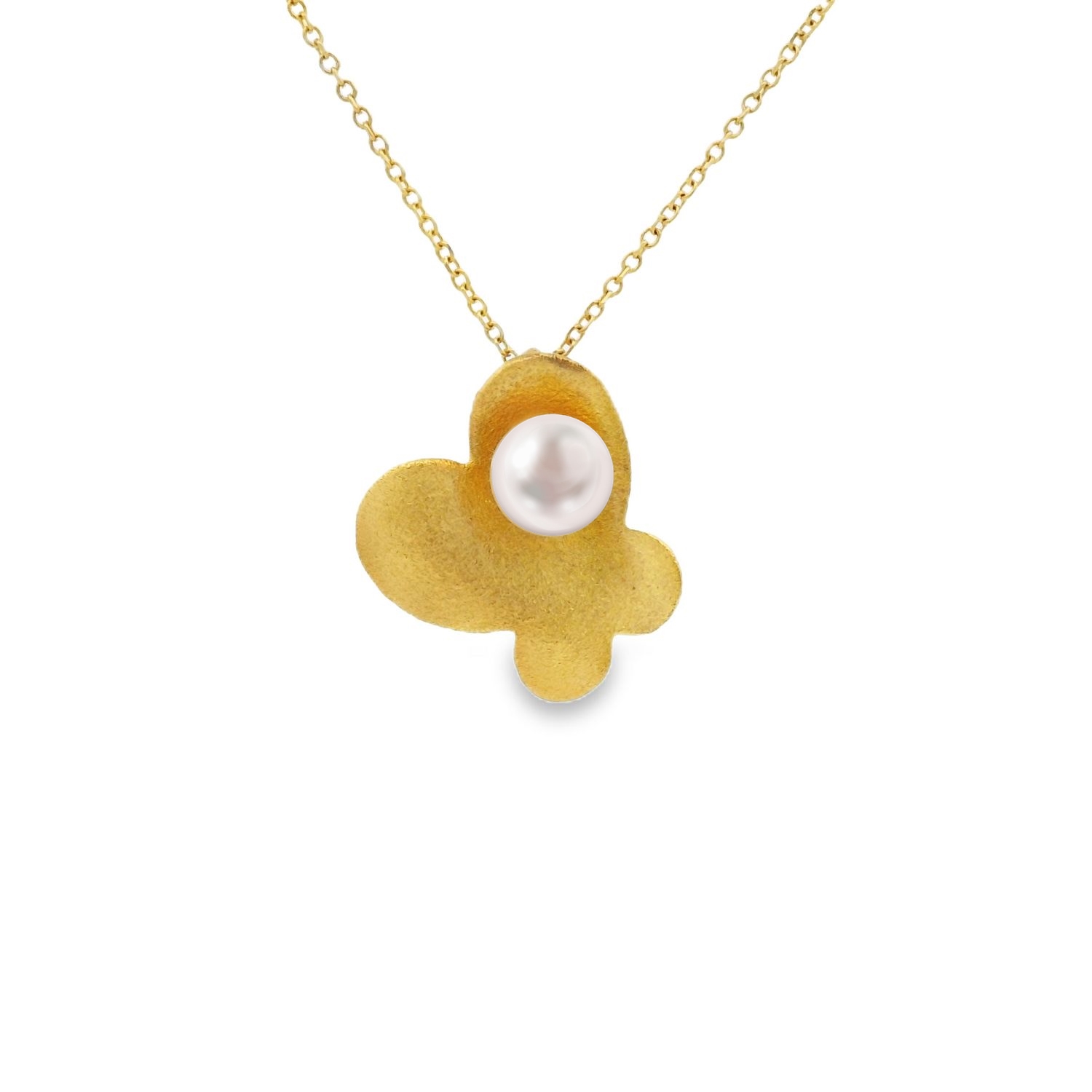 Butterfly pendant with pearl in 14 karat gold. The chain is sold separately.