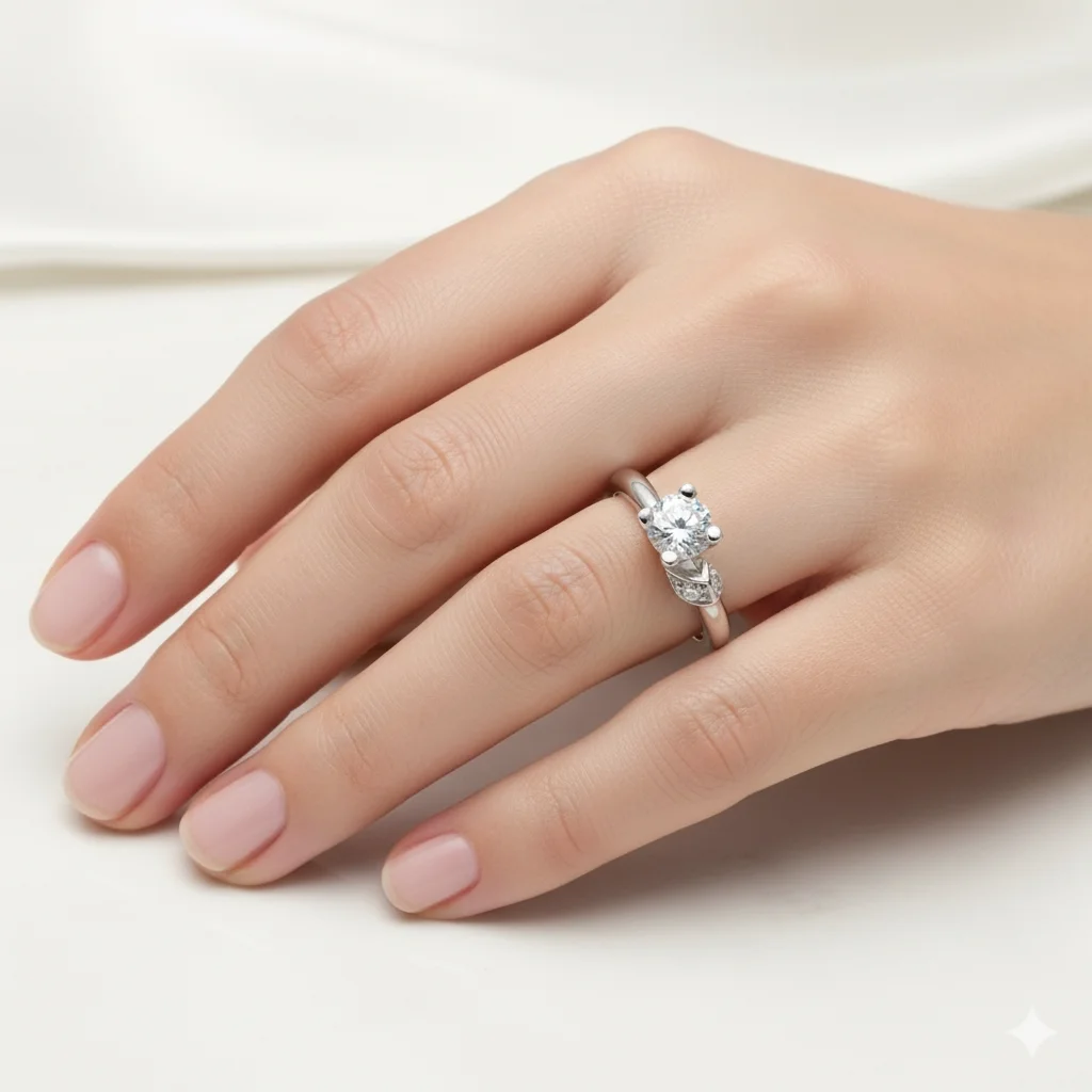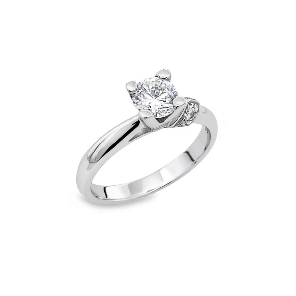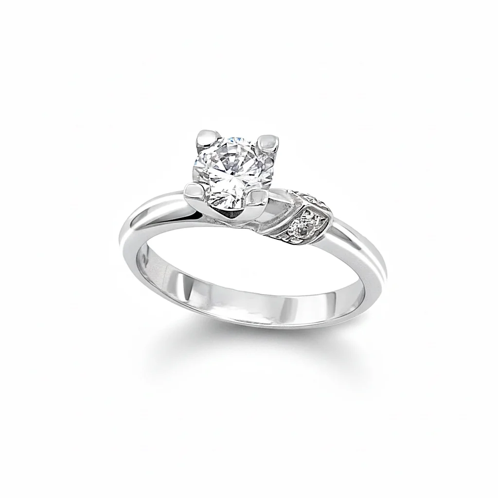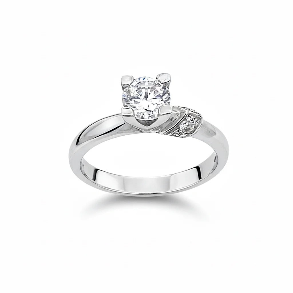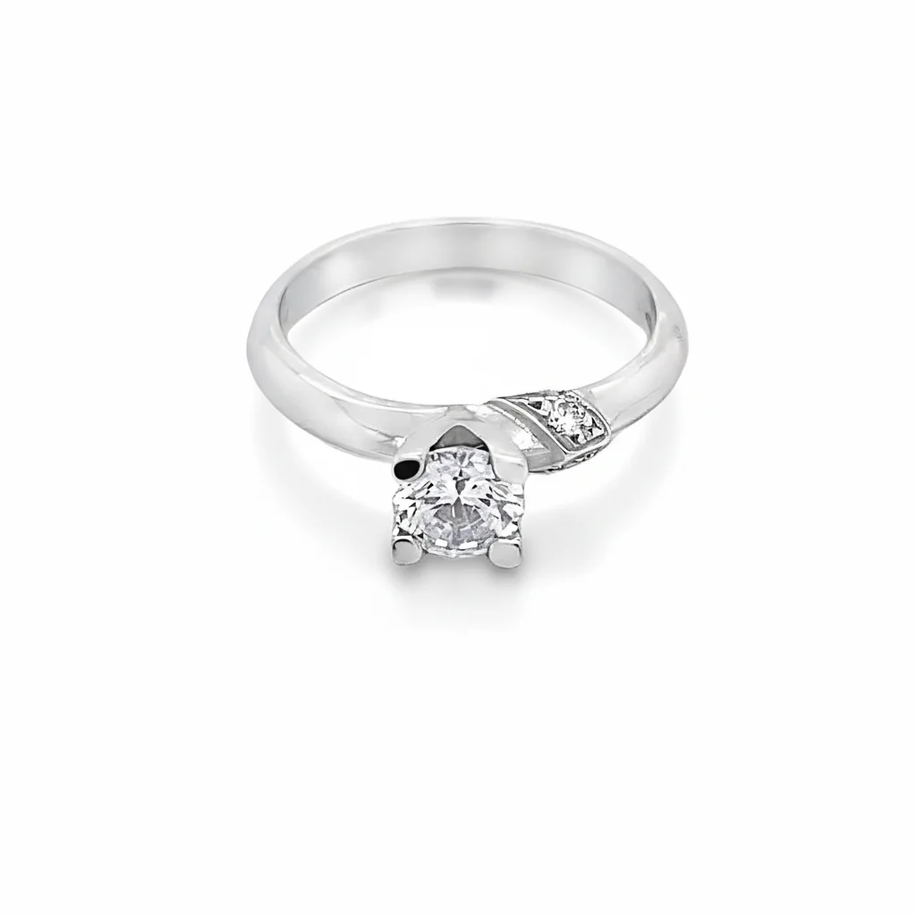 Single stone ring with cubic zirconia stones in 14 carat white gold.