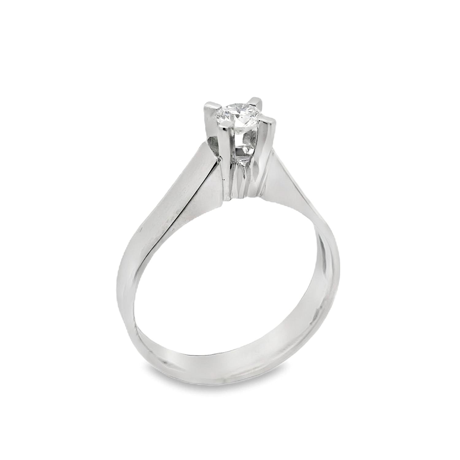 Single stone ring in 18 carat white gold with 0,18ct diamond in G colour and VS clarity.