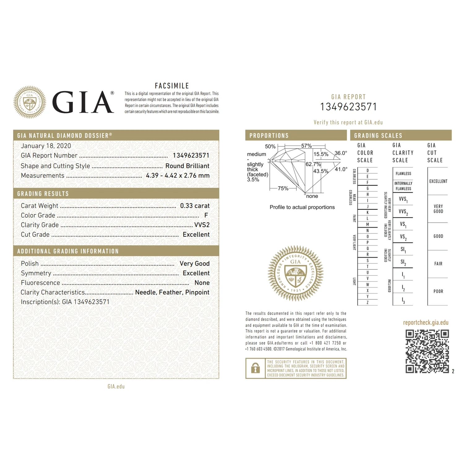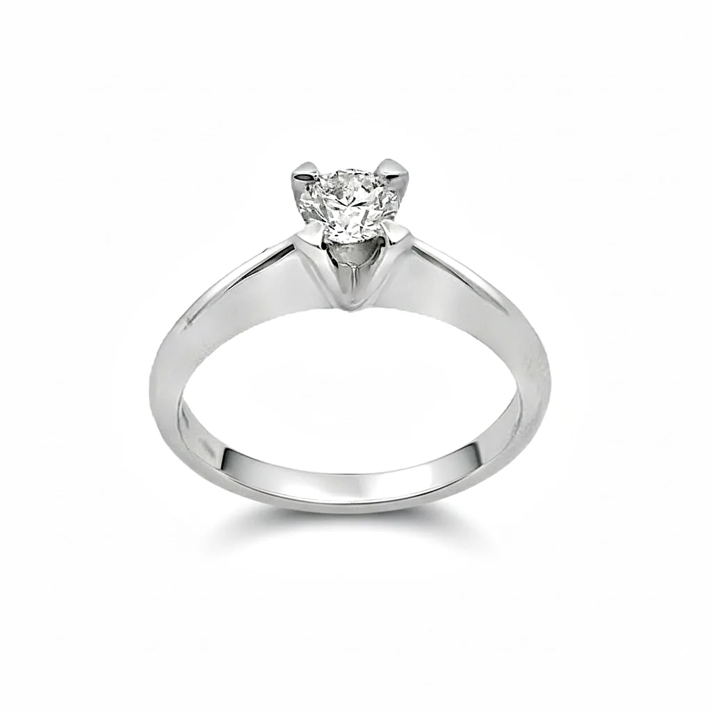 Single stone ring in 18 carat white gold with 0,33ct diamond, color F, purity VVS2 with Excellent cut certified by GIA.