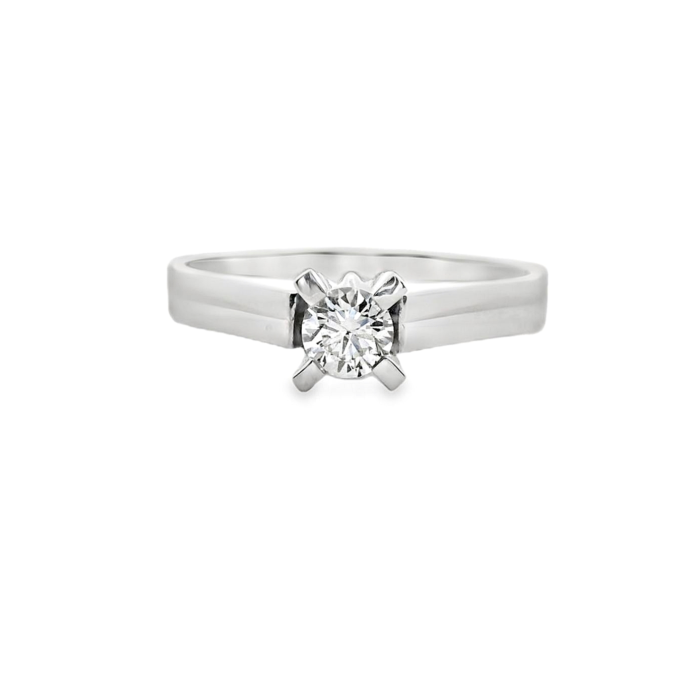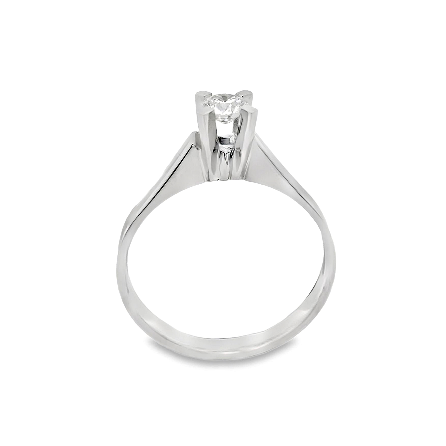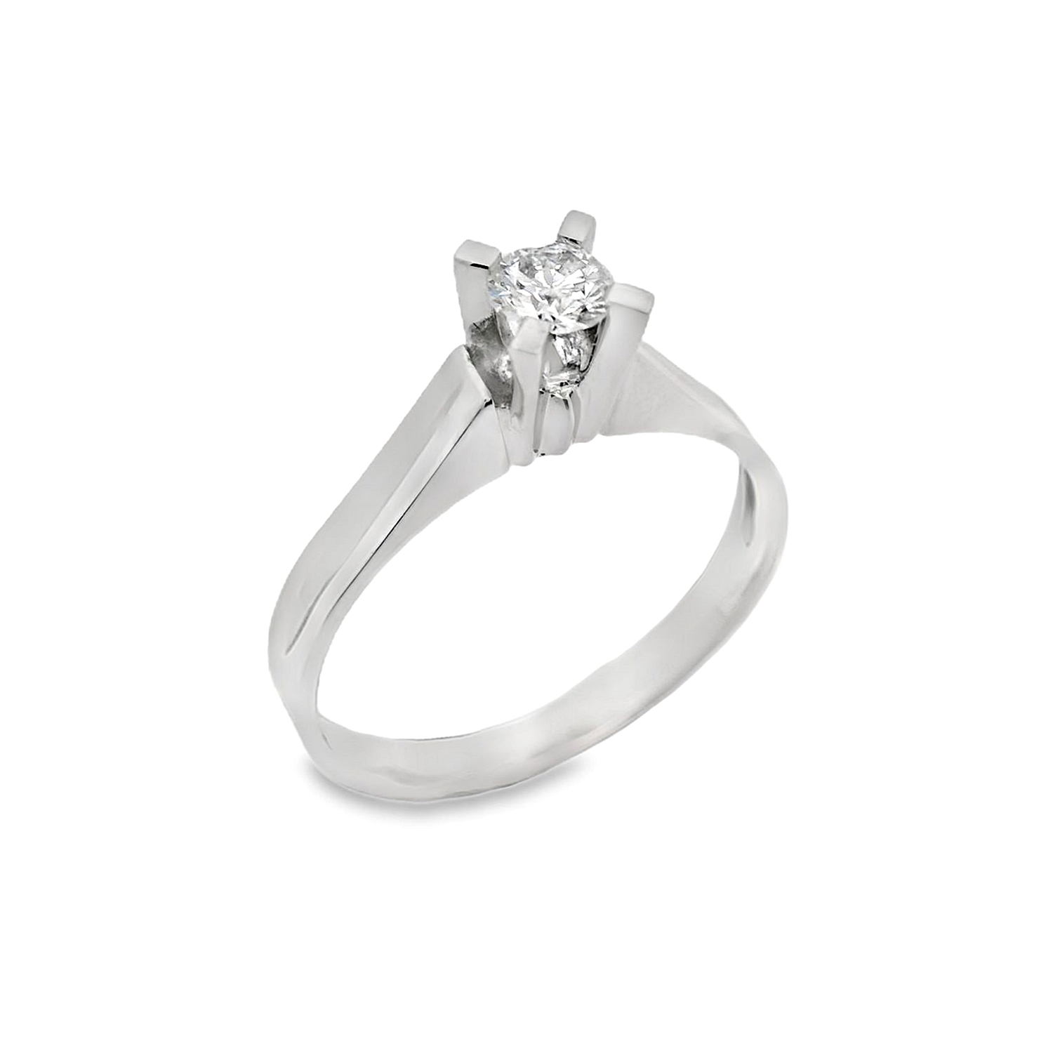 Μονόπετρο δακτυλίδι σε λευκόχρυσο 18 καρατίων με διαμάντι 0,19ct χρώματος F και καθαρότητας VS.