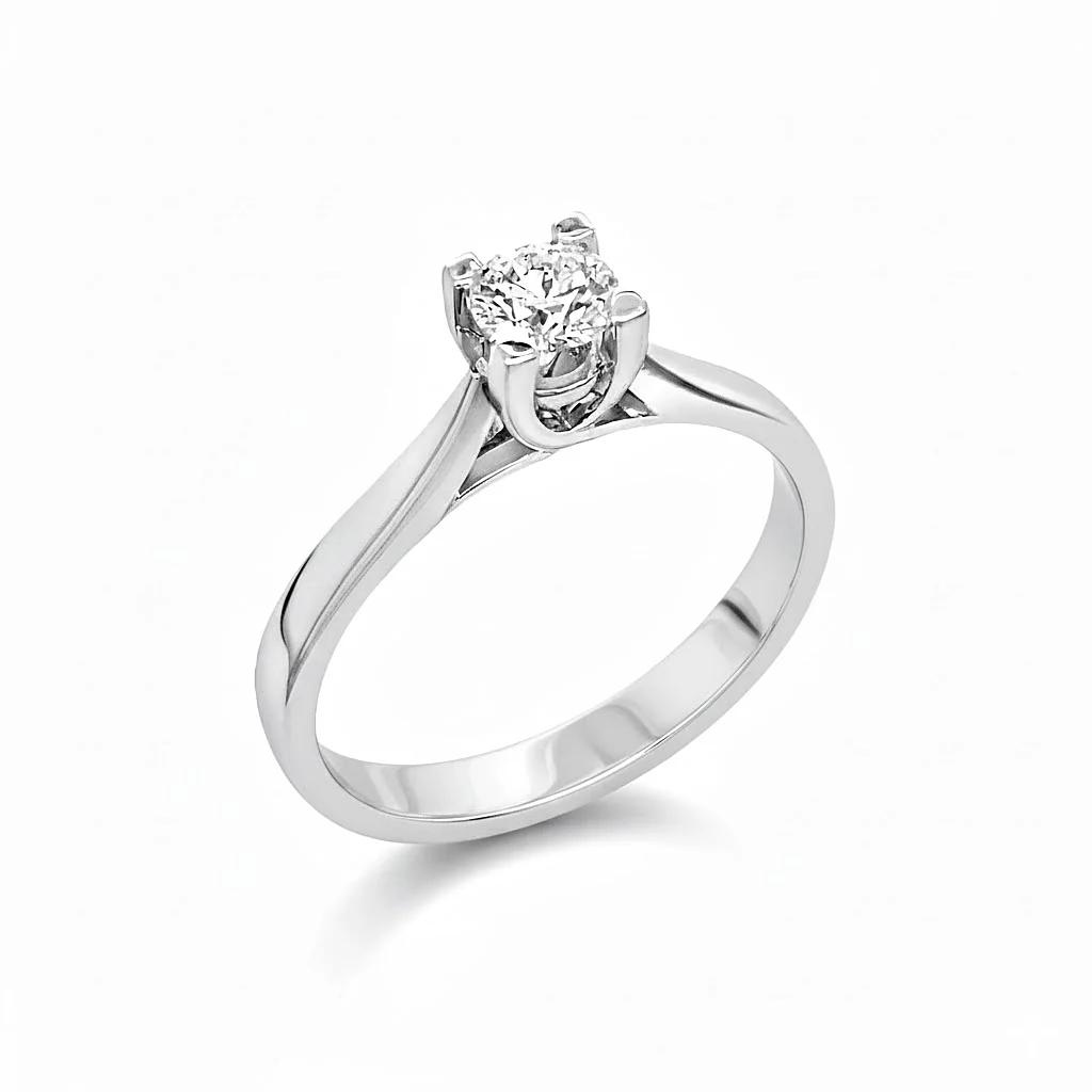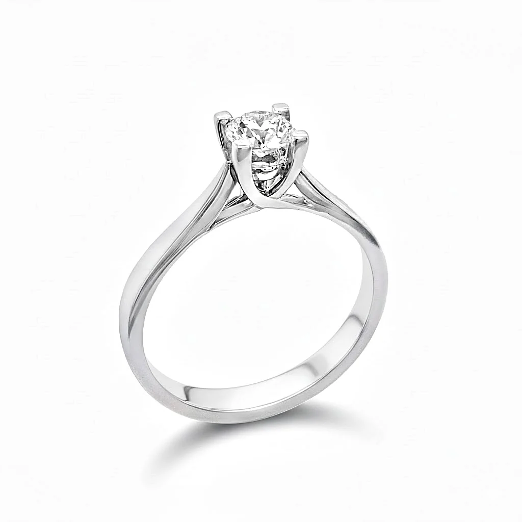 Μονόπετρο δακτυλίδι σε λευκόχρυσο 18 καρατίων με διαμάντι 0,30ct, χρώματος E και καθαρότητας VS1, με excellent κοπή, γυάλισμα και συμμετρία πιστοποιημένο από το GIA.