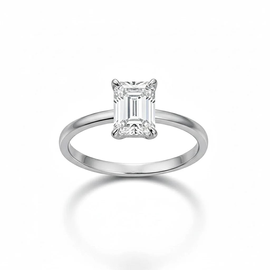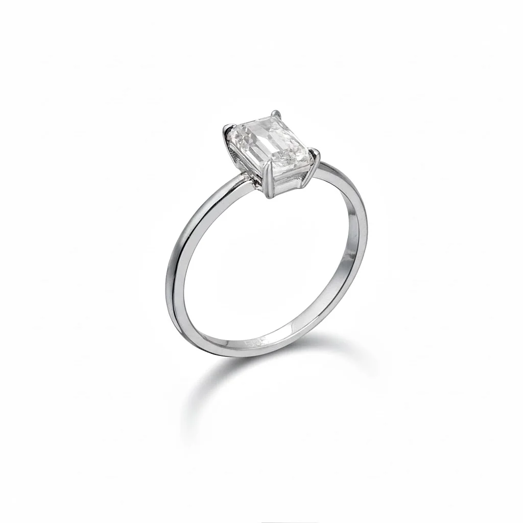Μονόπετρο δακτυλίδι με Emerald Cut Ζιργκόν