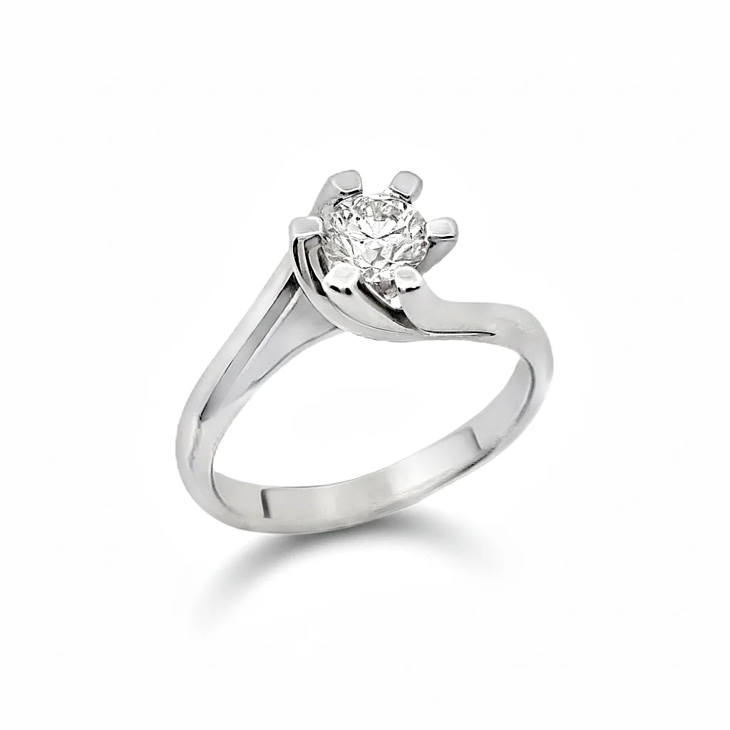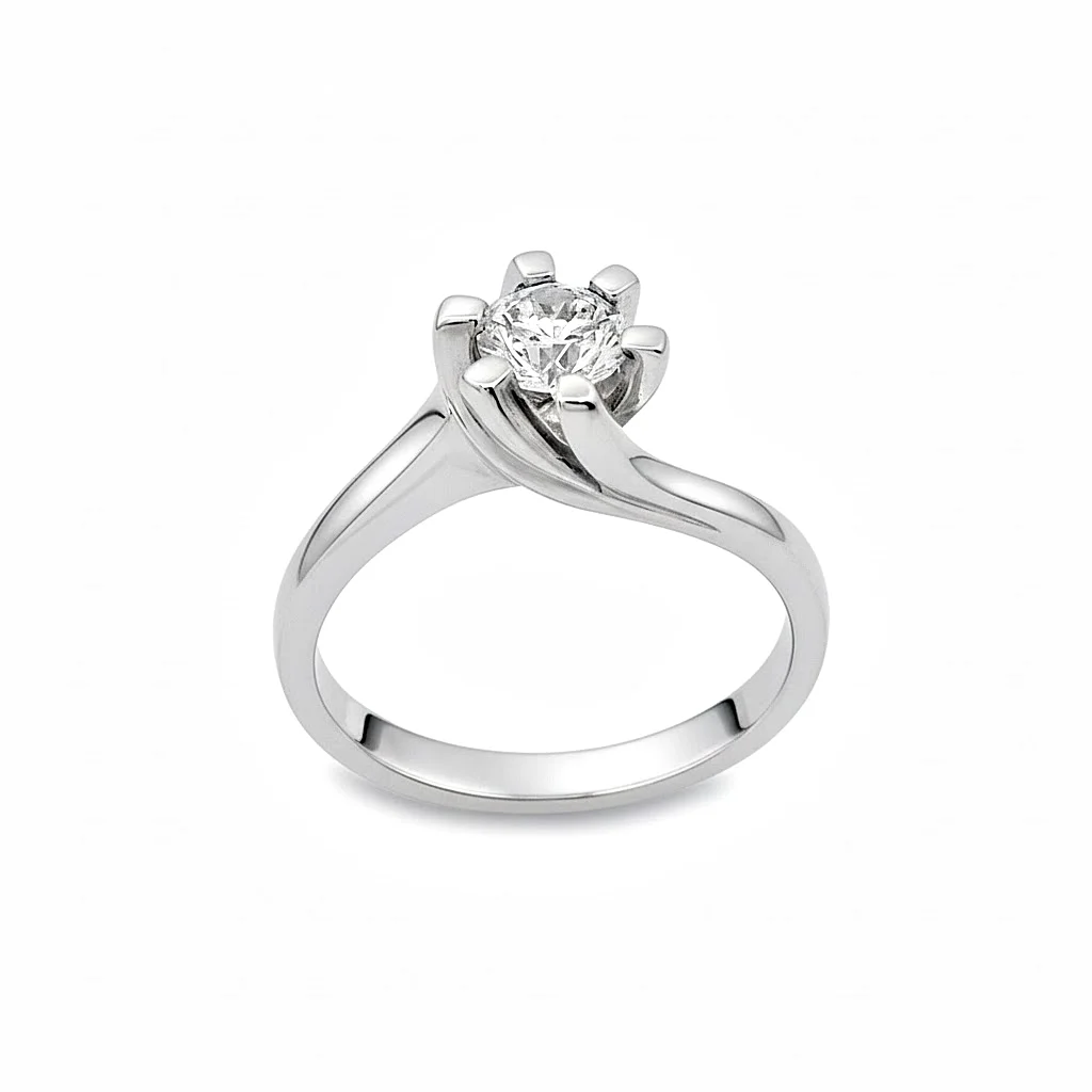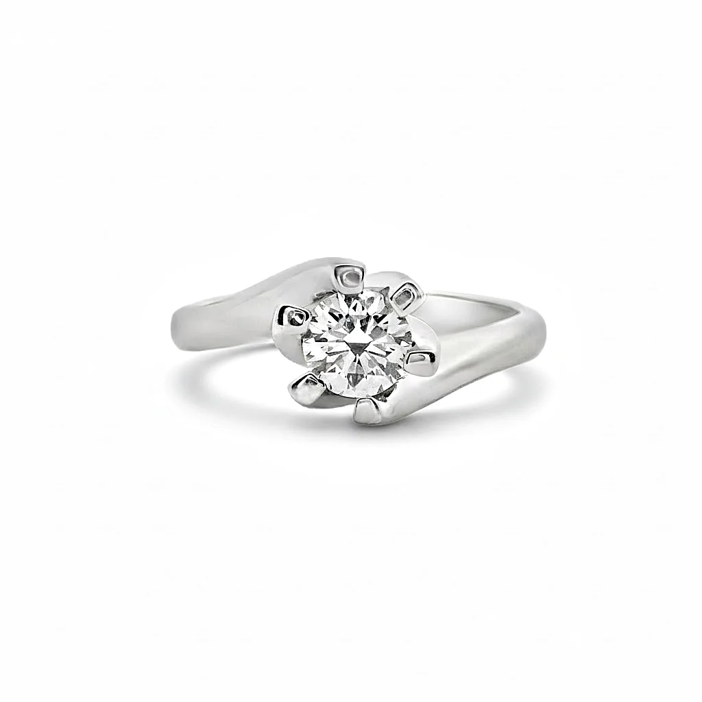 Flame-Style Solitaire Ring with Brilliant-Cut Diamond