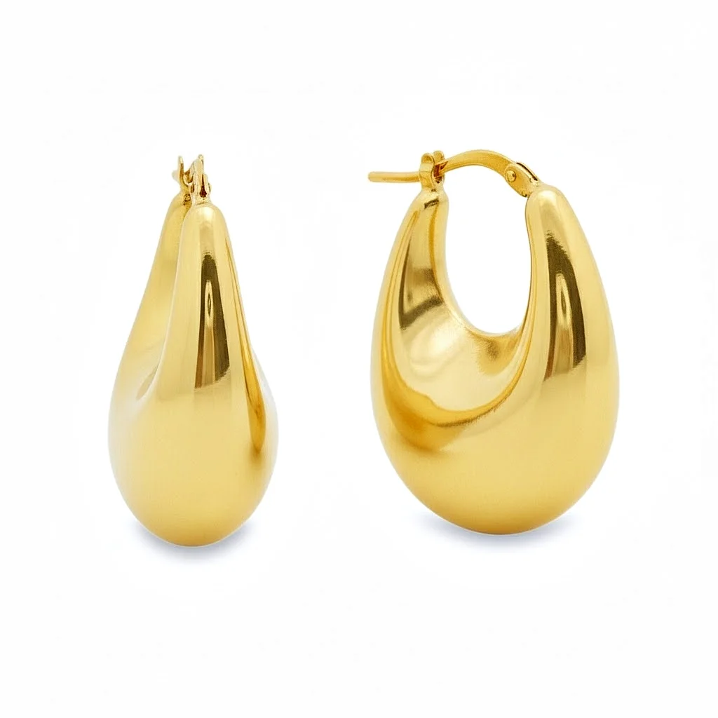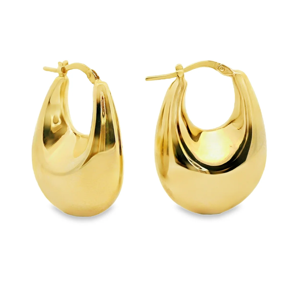 Hoop earrings, in 14 karat yellow gold and patent.