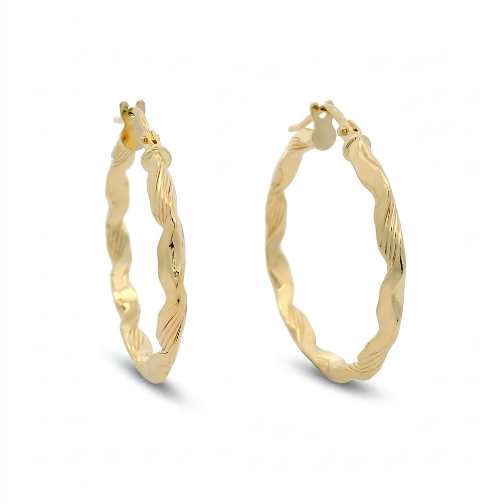 Σκουλαρίκια κρίκοι σε κίτρινο χρυσό 9 καρατίων. Ανακαλύψτε τη γοητεία του ανάγλυφου σχεδιασμού με τους κρίκους “Twisted Glow”. Η μεσαία διάμετρος των 20mm είναι η πλέον δημοφιλής επιλογή, καθώς προσφέρει την απαραίτητη ένταση για να αναδείξει το πρόσωπό σας, διατηρώντας ταυτόχρονα έναν σοφιστικέ και διακριτικό χαρακτήρα. Ο σπειροειδής (twisted) σχεδιασμός τους δεν είναι απλώς μια αισθητική παρέμβαση, αλλά ένας τρόπος να πολλαπλασιάζεται η αντανάκλαση του φωτός πάνω στον χρυσό. Το αποτέλεσμα είναι ένα κόσμημα που δείχνει διαρκώς λαμπερό και πολυτελές από όποια γωνία και αν το κοιτάξετε.