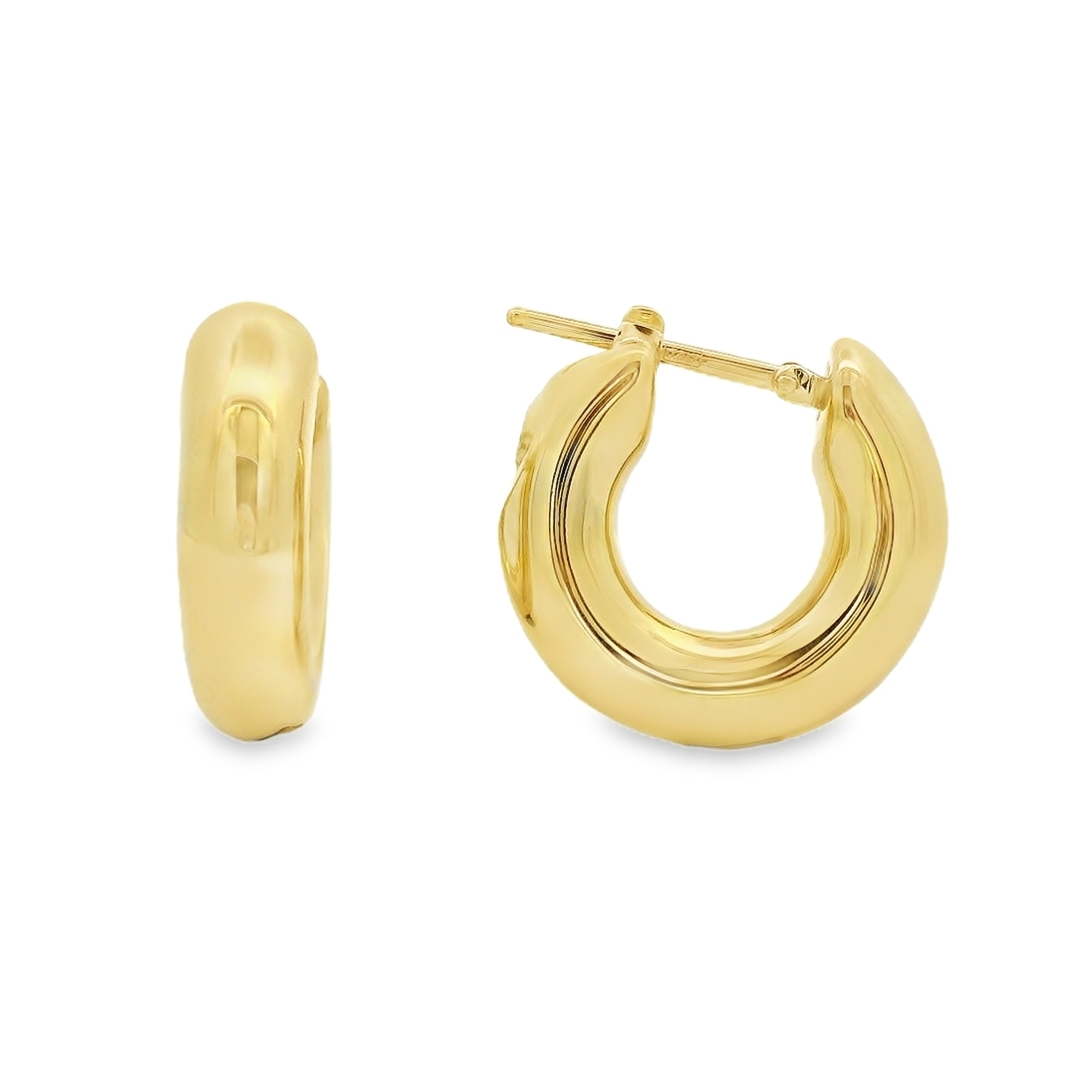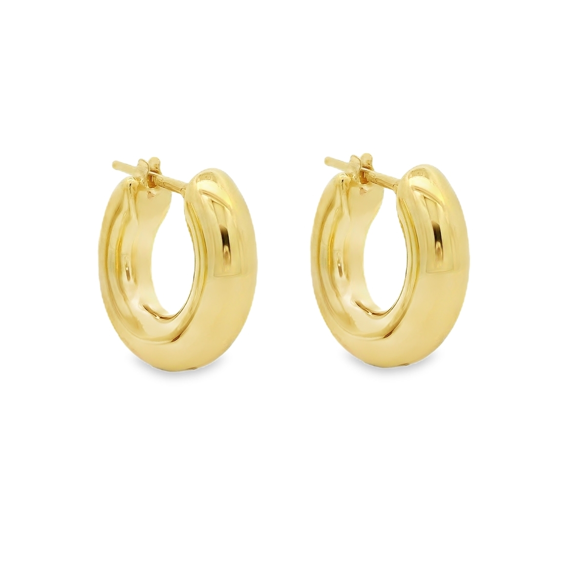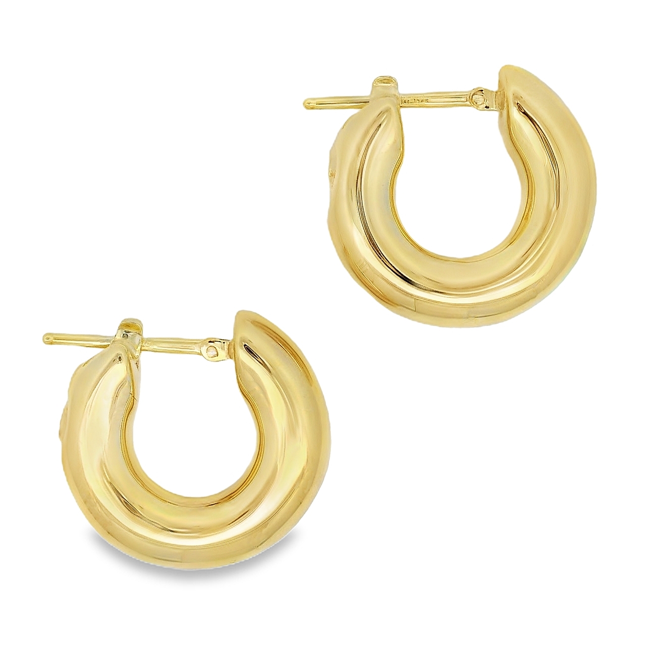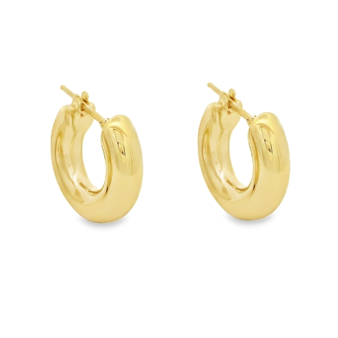 Hoop earrings, in 14 karat yellow gold and patent. Diameter 19mm.