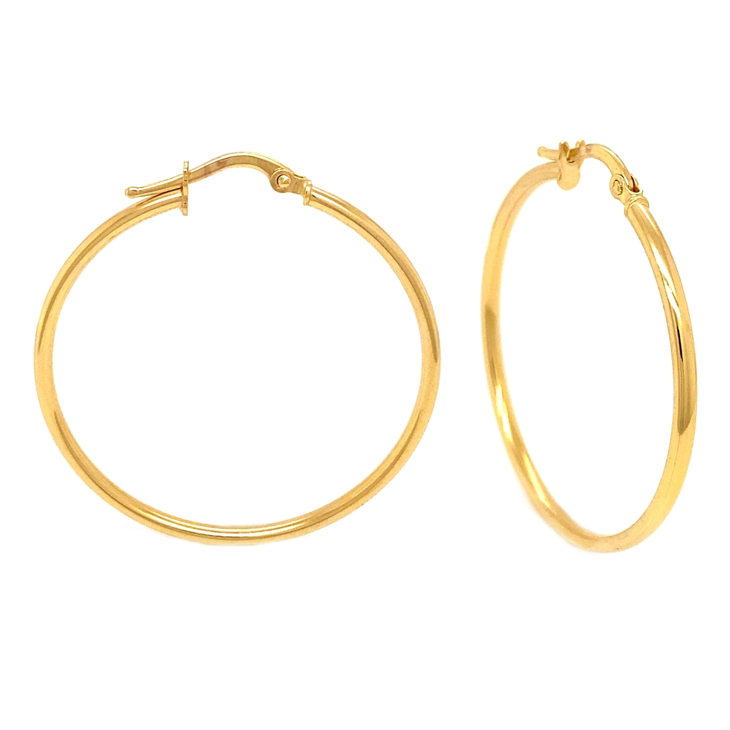 Hoop earrings in 14 karat yellow gold with polished finish.