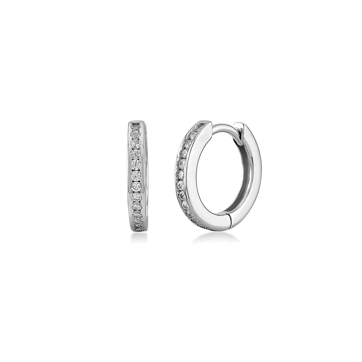 Αυτοί οι διαχρονικοί, μικροί κρίκοι είναι το απόλυτο must-have κόσμημα για κάθε γυναίκα. Ο μινιμαλιστικός σχεδιασμός τους συνδυάζεται με τη λάμψη των ζιργκόν για ένα κομψό και μοντέρνο αποτέλεσμα, στην κλασική, λευκή ασημένια εκδοχή. Κατασκευασμένοι από γνήσιο ασήμι 925. Μικρός, στρογγυλός κρίκος (γνωστός και ως “huggie”) που αγκαλιάζει τον λοβό του αυτιού. Η μπροστινή όψη είναι διακοσμημένη με μία σειρά από λευκά, λαμπερά ζιργκόν, προσδίδοντας διακριτική πολυτέλεια. Ιδανικοί για καθημερινή χρήση και εξαιρετικοί για ear stacking (συνδυασμός με άλλα σκουλαρίκια) σε διάφορα τρυπήματα.