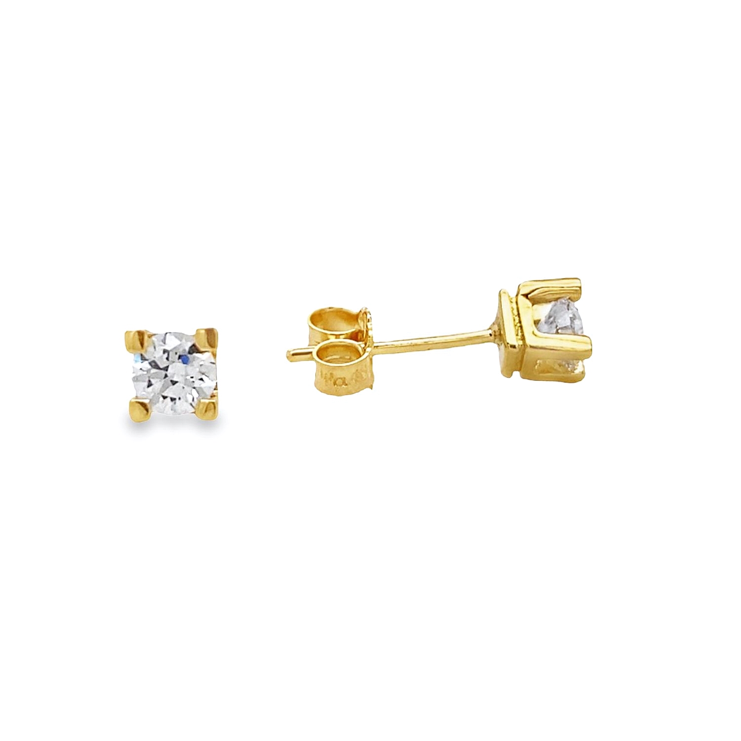 Earrings in 14 carat gold with white cubic zirconia. Butterfly clasp.