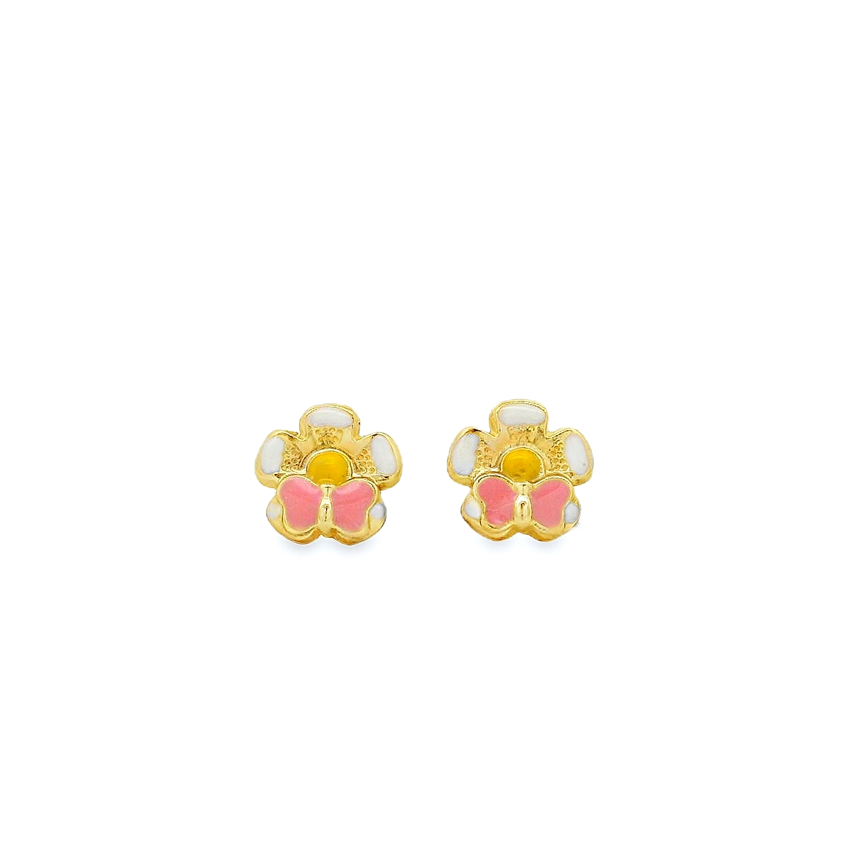Σκουλαρίκια Παιδικά Λουλούδι με Πεταλούδα και Σμάλτο σε κίτρινο χρυσό 9 καράτια.