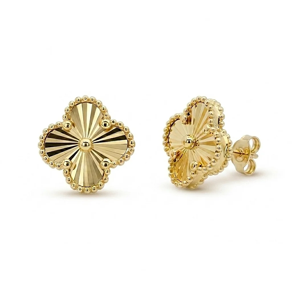 Clover earrings in 14 carat gold. Diameter 13,50 mm.