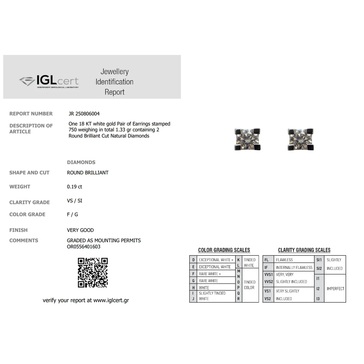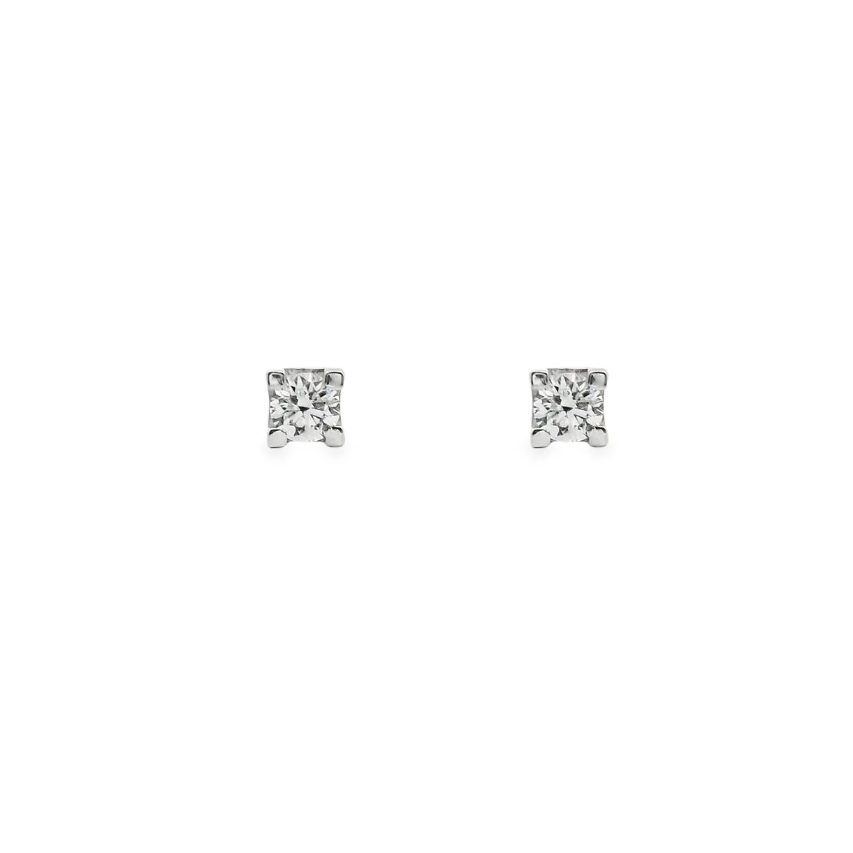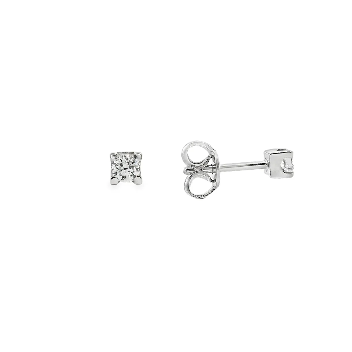 18-carat white gold solitaire earring with 2 white diamonds in the center, in brilliant cut, total weight 0,19ct, color F/G and clarity VS/SI.