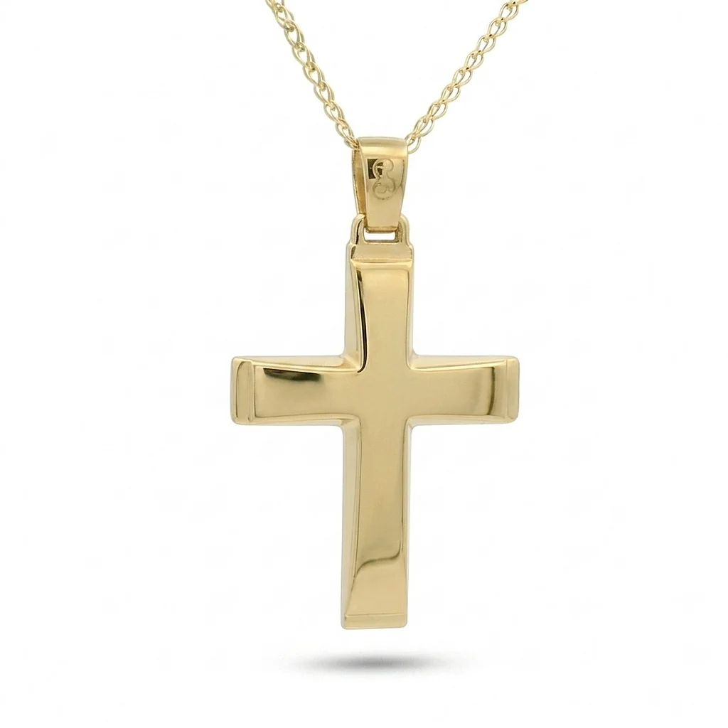 Σταυρός ανδρικός σε κίτρινο χρυσό 14 καράτια διπλής όψης. The chain is sold separately.