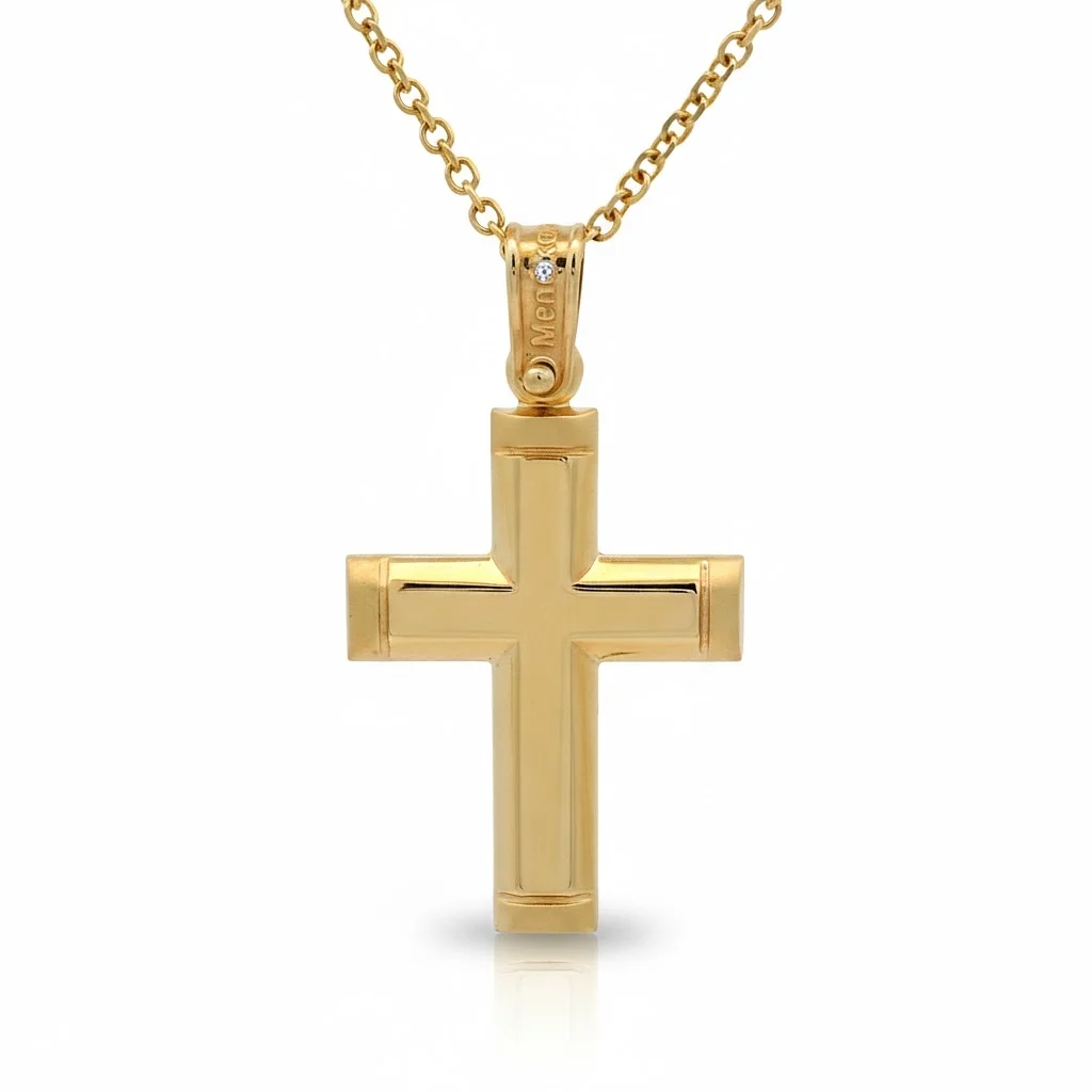 Σταυρός ανδρικός σε κίτρινο χρυσό 9 καράτια. The chain is sold separately.