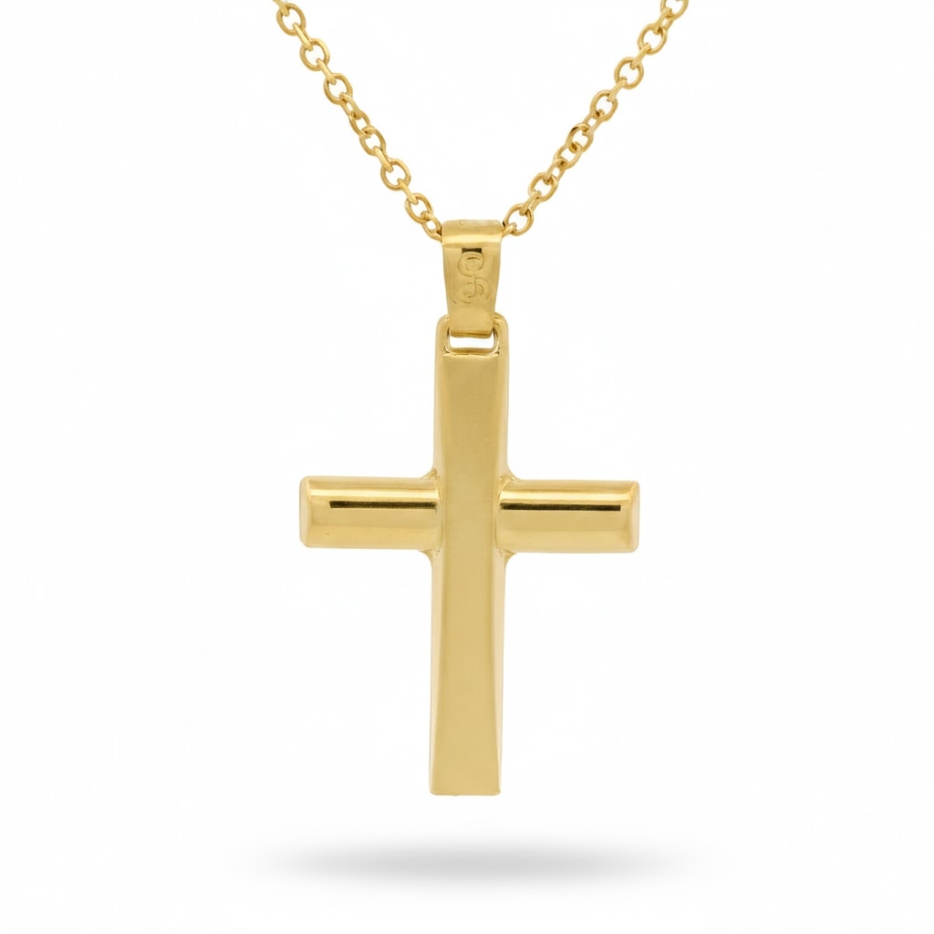 Σταυρός ανδρικός σε κίτρινο χρυσό 9 καράτια. The chain is sold separately.