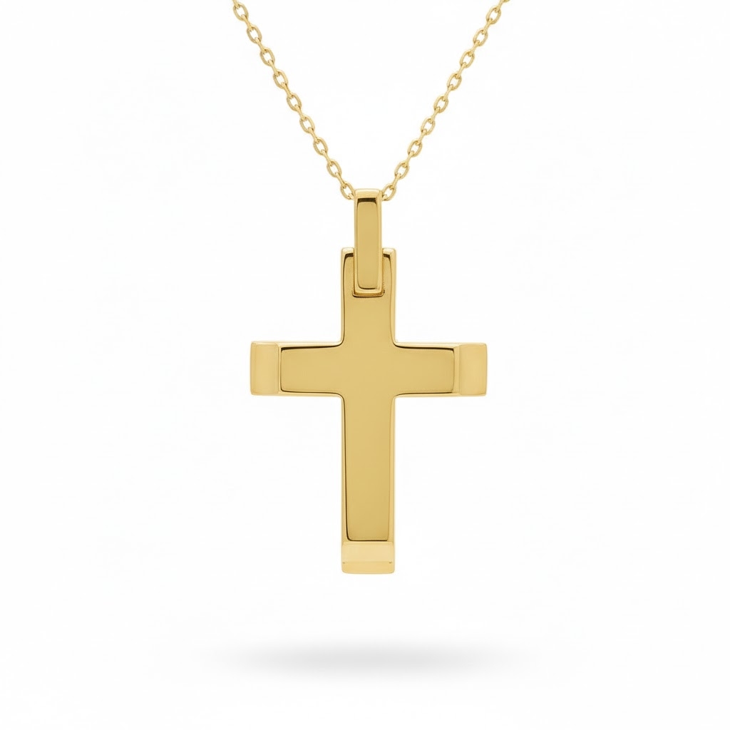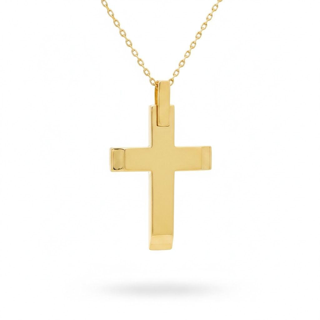 Σταυρός ανδρικός σε κίτρινο χρυσό 9 καράτια. The chain is sold separately.