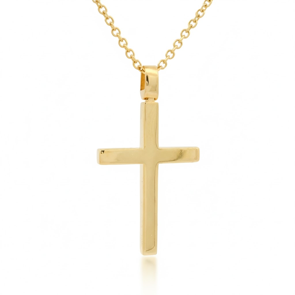 Σταυρός ανδρικός σε κίτρινο χρυσό 9 καράτια. The chain is sold separately.